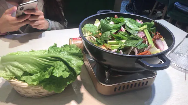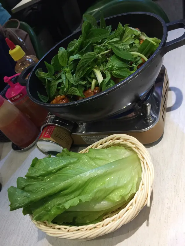餐廳內佈置越式風格,有D嚟到越南用餐嘅感覺,而且座位闊落,空間感十足。香芽雞煲用越式呈現嘅雞煲,煲上有大量香草,香味十足。因為友人唔識得辣,所以叫咗BB辣,但雞煲都帶有香濃嘅惹味。雞砌得較細,所以更入味,而且肉質香滑。蝦餅新鮮滾熱辣出爐,炸到十分香脆,而且呈現金黃色,大大舊。咬落超級彈牙,帶有蝦味用心之用。馬拉盞通菜又係越式名菜,通菜新鮮惹味,而且香爽可口。份量都足夠四人食用,可謂性價比十足。用餐途中,聽到店員講越南話,有返到去越南既感覺,即刻覺得回哂本一lol…查看更多