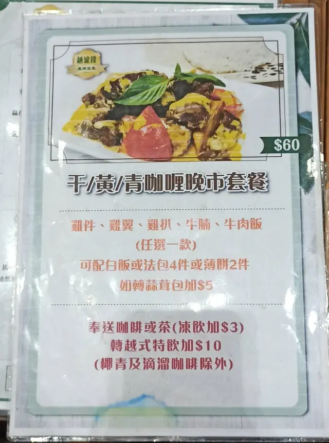 無骨海南雞餐($68)凍檸檬茶(+$3)可選白飯或油飯,揀咗後者,油飯唔油膩夠乾身,但無咩香味。海南雞唔太得,雞皮算係爽口的,但雞肉一啲都唔嫩滑,雞翼中間啲肉都稍嚡,雞胸肉更加嚡身。提供醬汁得一款,味道偏酸。另外有一小碟油菜。黃咖喱牛腩配薄餅($60)凍檸檬茶(+$3)咖喱有乾、黃、青三款揀,肉類有雞、牛共五種,可選白飯、法包、薄餅,或+$5轉蒜蓉包。黃咖喱微辣,味濃;牛腩有五舊,肉質普通,味道一般;另有四舊薯仔,夠粉;仲有幾件三色椒。薄餅有兩塊,一開二共四片,煎得香脆,少少牛油香,好適合點咖喱。串燒($15@)豬、牛、雞各要咗一串。三串都燒得不錯,外層微香,裡唔肉質唔乾唔嚡。豬肉有𡁻口;牛肉肉質軟嫩,有牛味;雞肉見到本來有少驚,但竟然肉嫩,仲好食過海南雞啲肉。提供嘅醬汁酸酸辣辣,十分惹味,點串燒好夾(仲用嚟點埋海南雞食)。雖然未至於唔好食,但真心覺得無 openrice 上咁高分嘅質素,只屬於正正常常,合格之作。PS:沒有加一服務費。收現金及八達通。…查看更多