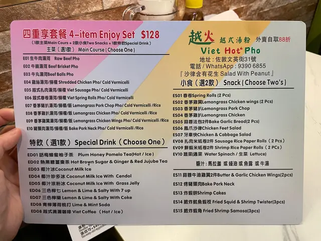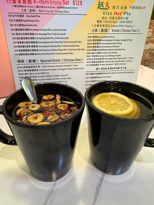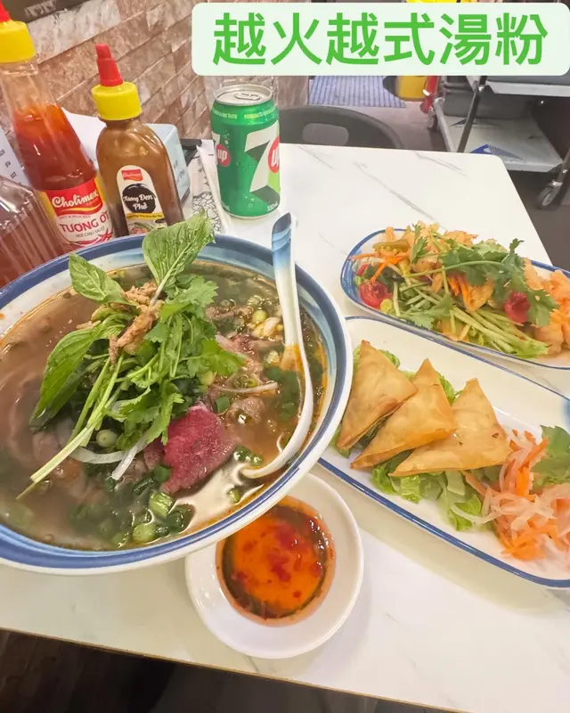 香港|佐敦|越火越式湯粉一到夏天就想食啲酸辣野,今日經開柯士甸站,搵到間越南餐廳,有驚喜😎。叫左個四重享,有主食+2x小食+飲品,好豐富。E01 生牛肉湯河因為想食辣,轉左順化辣湯底,更加惹味。湯底夠熱夠香,牛肉切得薄薄一片,入口滑又唔鞋,河粉唔會太腍,仲保持到彈牙口感,真係幾正!細鳳爪沙律無骨鳳爪爽口,酸酸地好開胃。三件炸蝦角炸得金黃香脆,好香口,配埋甜酸醬,正👍三色檸七有新鮮檸檬、青檸、咸檸檬,好睇又好飲,檸檬同七喜嘅酸酸甜甜仲咸咸地好清新,飲落有層次感又解渴。超近柯士甸站,下次搭完高鐵去食都好方便越火越式湯粉 (佐敦)佐敦文英街31號地下A號舖#佐敦美食 #佐敦 #越南餐廳 #生牛肉湯河 #咸檸七…查看更多