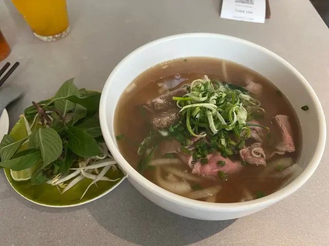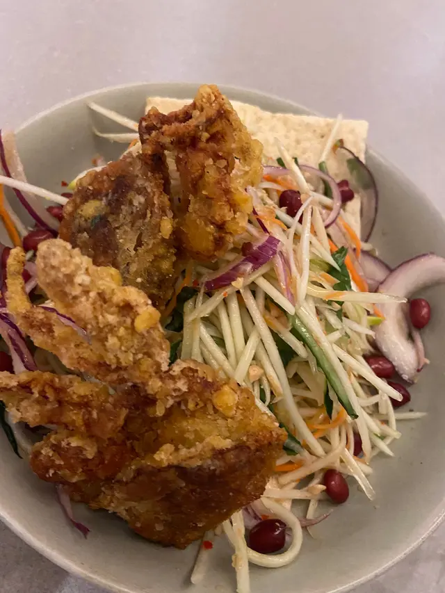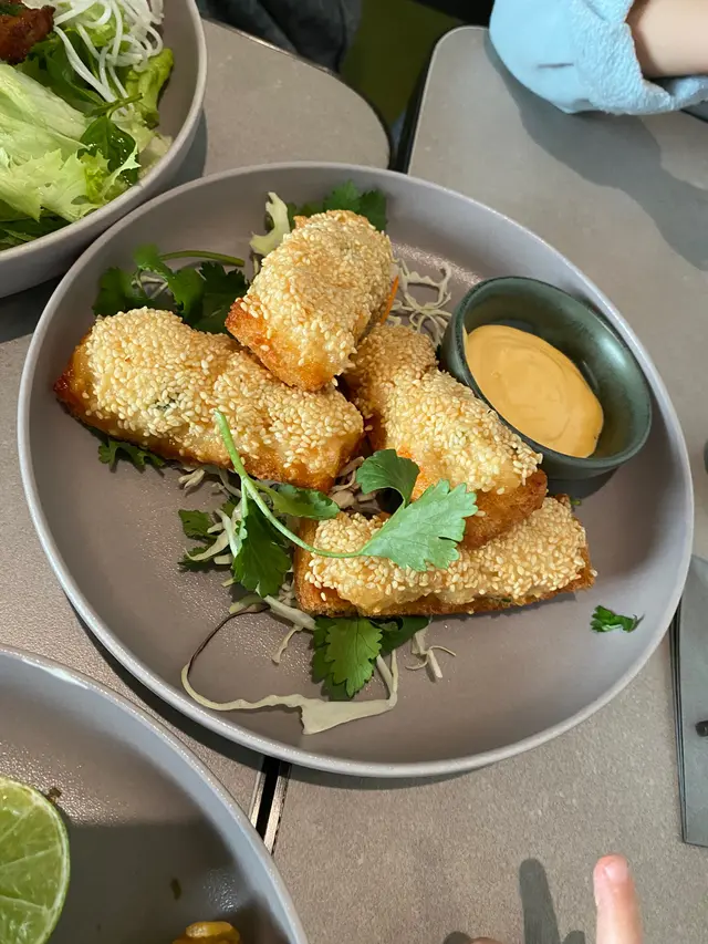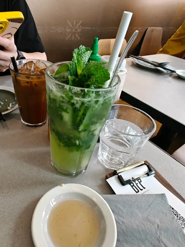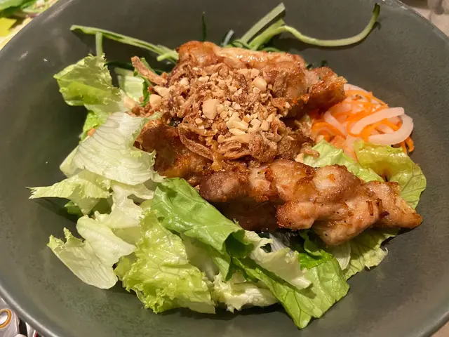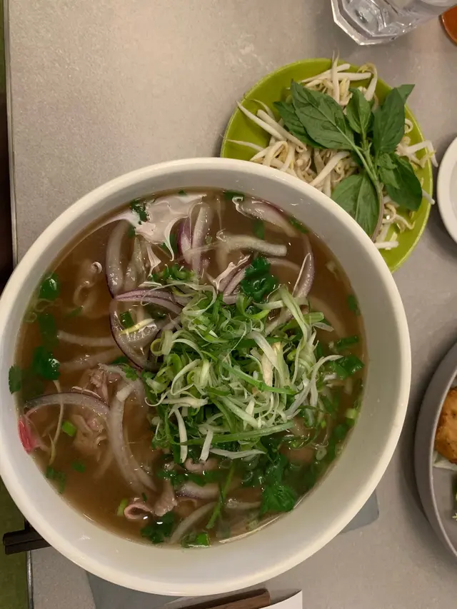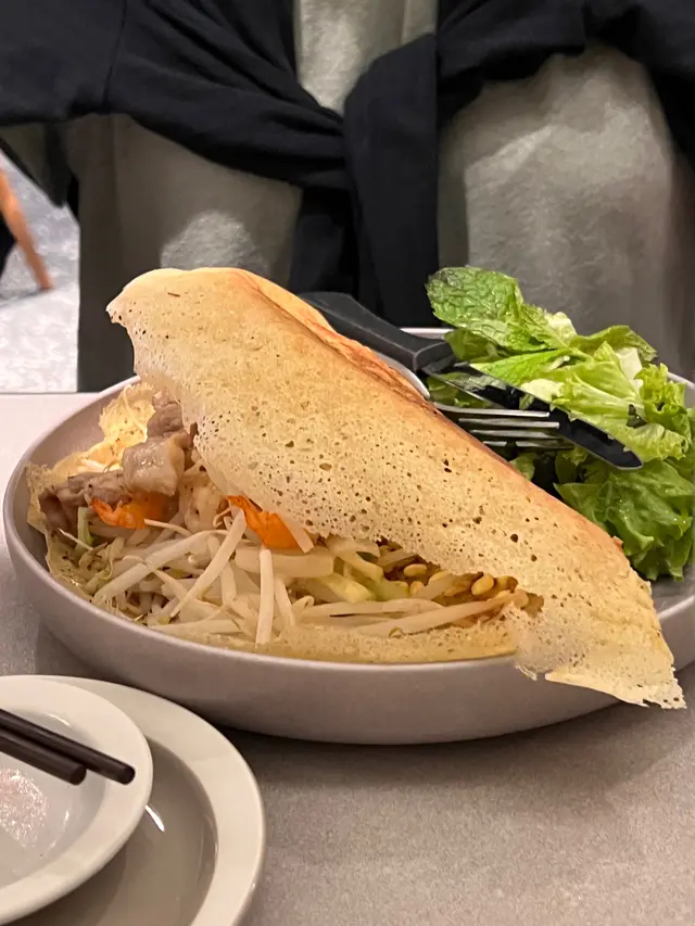 小妹幾喜歡食越南菜,今晚晚餐選這家餐廳,第一次來食所以選幾款平常會食的菜式! 香芋蟹肉春卷$98春卷是必食,侍應幫忙將春卷剪開。想不到香芋與蟹肉幾夾,春卷餡料口感飽滿,芋味較濃鹹味適中,炸得香口,生菜也新鮮。桌上配備幾款醬料,先蘸常用的魚露再用生菜包好春卷,好味! 小妹的朋友喜辣,加辣醬食也不錯!烤三文魚撈檬 $108賣相不錯,兩件三文魚扒幾厚,三文魚皮帶點焦香,調味恰當,份量是非常好! 撈檬有蒜片、菜、蔥、蘿蔔絲、青瓜絲等,與魚露一起拌食不錯,我們都喜歡食魚所以很滿足。燒牛肉撈檬 $98牛肉一口大小,有濃濃黑椒味,配菜與烤三文魚撈檬一樣,加魚露再加一點啡色的少甜醬料幾好味。手打牛丸粉$80牛丸也有濃濃黑椒味,丸質爽,湯是清湯,與牛丸的濃味相亙中和。沙嗲牛肉湯粉 $98以為會有濃濃沙嗲在碗面,原來只是有淡淡的沙嗲味,香味不錯,有番茄件及牛肉片,味道比想像中好,有點像沙嗲番茄牛肉湯,飲埋湯都幾飽肚。以價格及份量來計是抵食,烤三文魚撈檬的三文魚份量非常好,沙嗲牛肉湯粉的湯底飲落又暖又開胃,每份菜式都看似一般般但味道質量是不錯!…查看更多