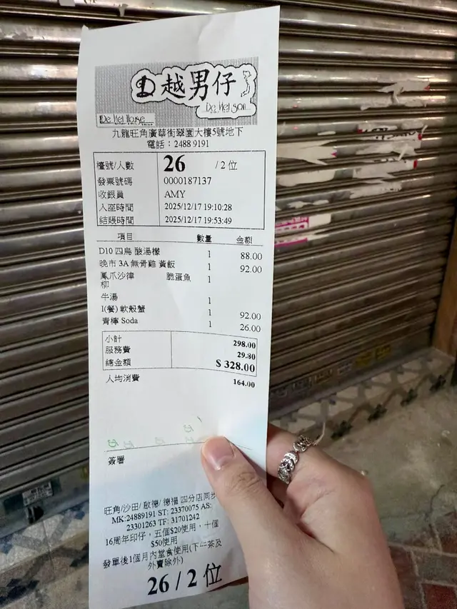 越男仔 (旺角) 網址: https://s.openrice.com/QrbS0no0A00 地址: 香港旺角廣華街2-20號翠園大樓二期地下5號舖 電話: +852 24889191