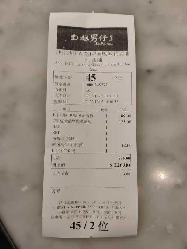 越男仔 (沙田) 網上訂座享低至78折優惠兼賺Rice Dollars 網址: https://s.openrice.com/QrbS00v8800 地址: 香港沙田沙田圍路1-7號勵城花園地下1號舖 電話: +852 23370075