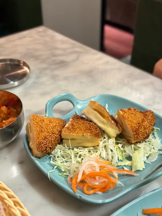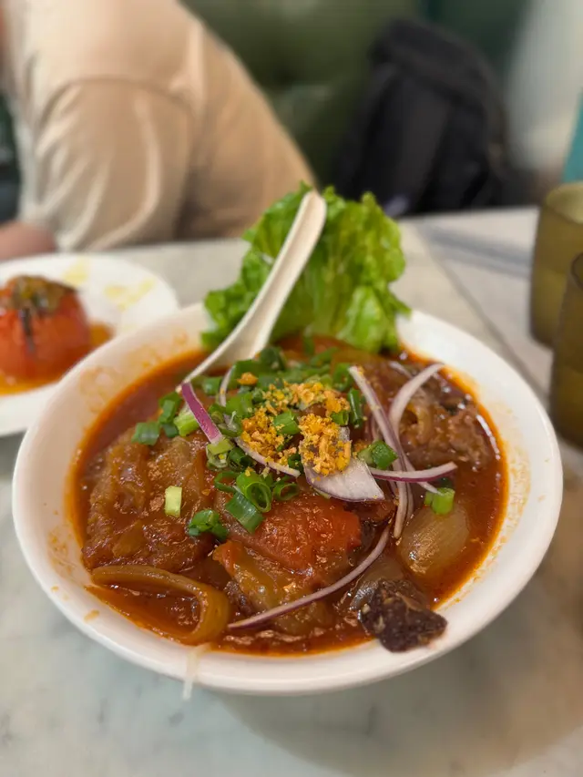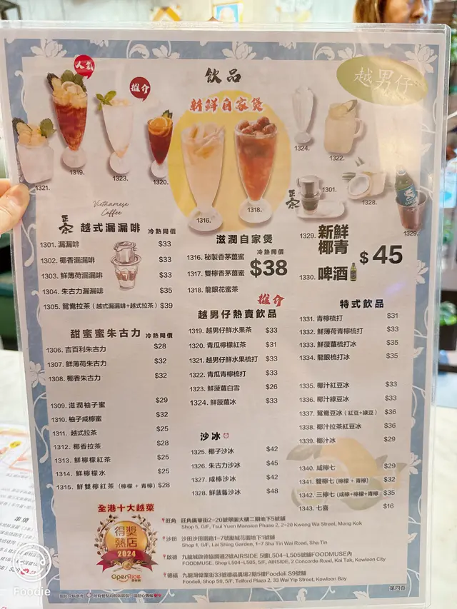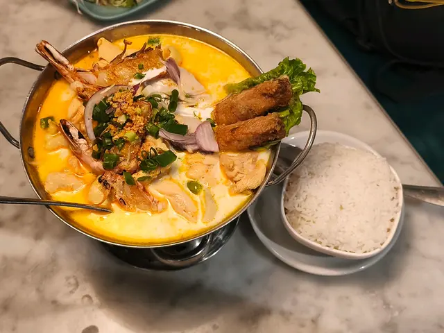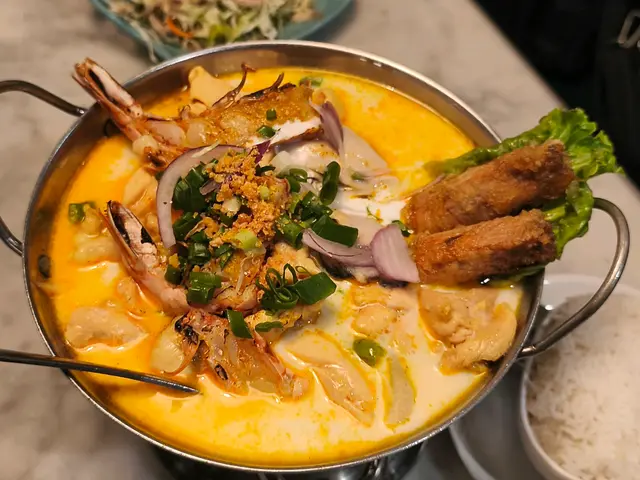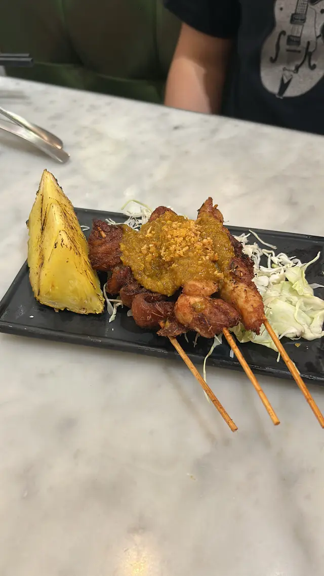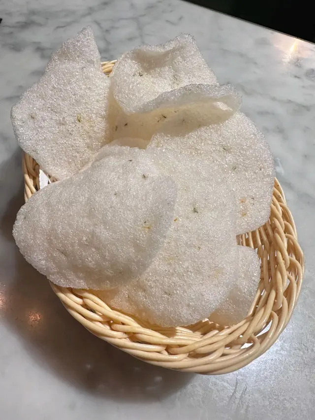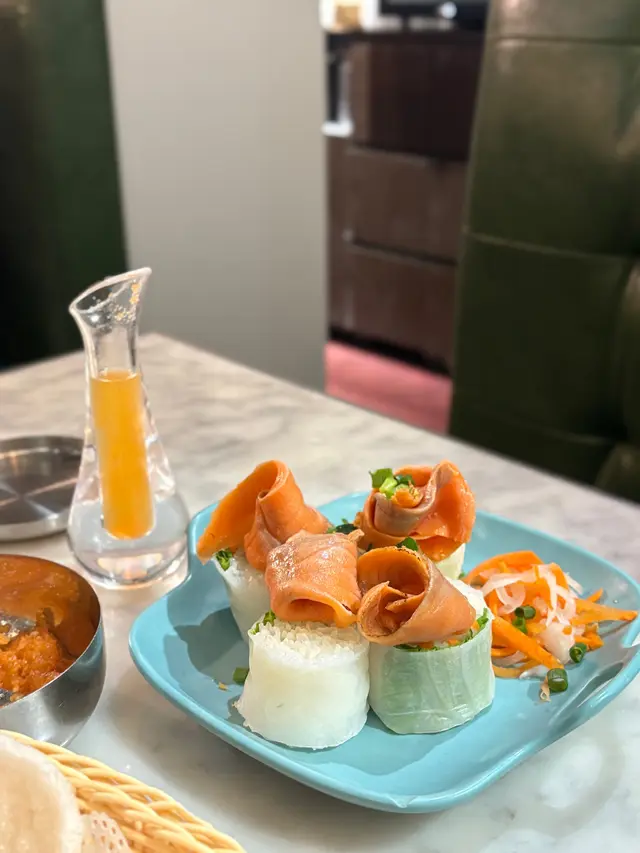 今次的越南菜餐廳一入坐就有佐餐小食蝦片做頭盤,意想不到超幸運。點了河內三鮮椰汁酸湯檬,以蠔、蝦及雞件做組合,湯底椰香酸爽,蝦膏鮮味突出而大大件肉質彈牙,而炸蝦頭香脆得更可直接吃掉,湯汁沾上鬆脆的大脆包,濃濃的湯汁令鮮蝦口感對比更加鮮明。再者蒜蓉牛油雙蝦扎肉撈檬粉香氣撲鼻,蝦肉飽滿,個人覺得有蝦的菜式中蝦隻的烹調處理及用料非常出色,然後當然不能小了撈檬粉的酸香配搭及秘制沙嗲串燒大併盤的精彩,一整條菠蘿擺盤方式非常漂亮,菠蘿與肉串交錯放置,除了視覺吸引外,菠蘿更可當扒自行厚切,啖啖甜汁入口爆開,與烤肉簡直絕配。…查看更多