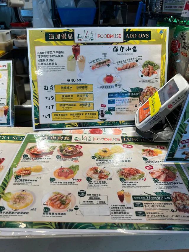 同朋友約好咗過嚟呢邊玩,不過時間有啲趕,所以咩都唔諗直接喺food court嗰度見到有咩啱食就坐低食。睇咗幾間餐廳出嘅餐,見呢間越南餐廳嘅食物睇落唔錯,就揀咗款蔥油配香茅豬扒拼脆雞翼黃薑飯。食物賣相都唔錯而且份量十足,黃薑飯飯粒,粒粒分明,軟硬我覺得適中。雞翼同豬扒就冇咩溫度,都係預製好放喺度,連翻熱都冇。味度唔難食但係都唔係特別好食,就係快餐嘅水準同埋醫飽肚嘅程度。送埋碗餐湯搭多隻雞腳😂…查看更多