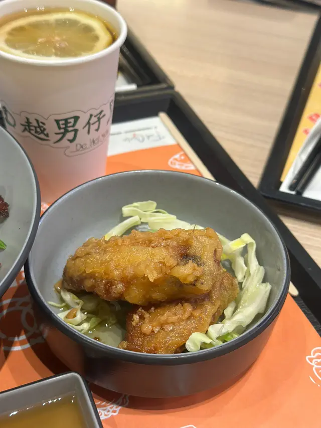 同朋友約好咗過嚟呢邊玩,不過時間有啲趕,所以咩都唔諗直接喺food court嗰度見到有咩啱食就坐低食。睇咗幾間餐廳出嘅餐,見呢間越南餐廳嘅食物睇落唔錯,就揀咗款蔥油配香茅豬扒拼脆雞翼黃薑飯。食物賣相都唔錯而且份量十足,黃薑飯飯粒,粒粒分明,軟硬我覺得適中。雞翼同豬扒就冇咩溫度,都係預製好放喺度,連翻熱都冇。味度唔難食但係都唔係特別好食,就係快餐嘅水準同埋醫飽肚嘅程度。送埋碗餐湯搭多隻雞腳😂