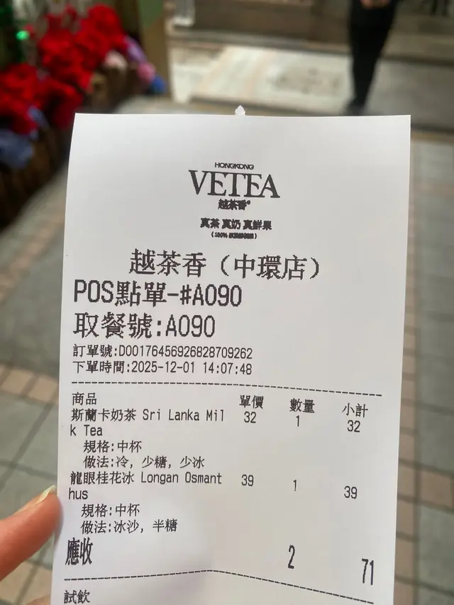 呢間VETEA係香港人自家搞嘅茶飲,用料夠實在~中午去排隊都幾多人,不過味道真係幾OK可以嚟試一下今日試咗牛油果甘露乳酪同龍眼桂花冰:牛油果款口感綿滑,乳酪香搭住牛油果嘅濃郁,每啖都夠厚身;龍眼桂花冰就清爽,新鮮龍眼肉甜潤,混住桂花茶底嘅清香,雖然而家係冬天都幾適合飲佢哋食材全天然,水果都係新鮮整唔落果漿,糖用純冰糖,茶葉仲揀4月頭批春茶,飲落夠放心。鍾意真材實料茶飲嘅,呢兩款可以試下~其他應該都OK嘅…查看更多