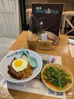下班总想吃点没负担又满足的好味道,看了只能去吃pho,这家躺在我收藏级好久!😚终于来了!🔥越莱精选火车头🍝巨巨巨大一碗,生牛肉,牛腩,牛筋,牛丸,鸡丝,扎肉,吃配菜都可以吃饱的大大碗,汤底鲜美,河粉爽滑,不要太满足🔥咖喱牛肋肉煎蛋饭🍳咖喱好入味,牛肋肉很入味,软而不烂,配上煎蛋饭,1sZ愈打工人的疲惫🔥越莱鸡肉串烧🍖每次吃pho都要点串烧,这家鸡肉串烧算得上分量足 味道好 酱料够有料🔥带子明虾拌茄子🍆好像只有在越莱的菜单见到这个搭配,意料之外的好吃😋吃完才发现还有自选捞檬,看来该越下次再吃啦!