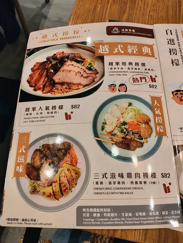 最近朋友帶到我深水埗越萊吃正宗越南菜🥰🥰,人均才$50+🤭,而且不需要收服務費💕,實在太划算了❗我們叫了自選湯河🍜(生牛肉+牛腩),兩餸的才$58,加配$8越南咖啡☕。豬頸肉肉碎煎蛋飯$62,加配$12紅豆冰🍹。再來一客馬拉盞炒通菜🥬$32。食物份量足,而且味道非常好😋,環境也不賴,充滿了越南特色❗重點是百多元已食到正宗越南菜,這價錢也真太超值了💕越萊還有另一分店在佐敦,位置也相當方便,真心推介❗…查看更多