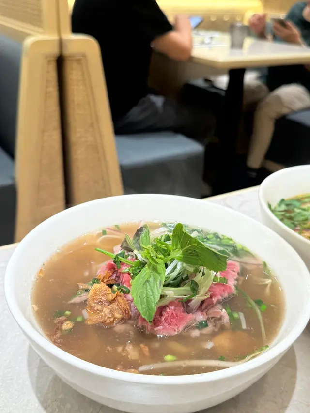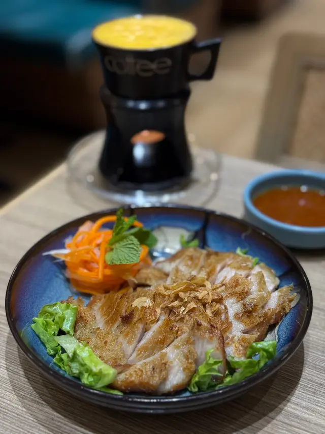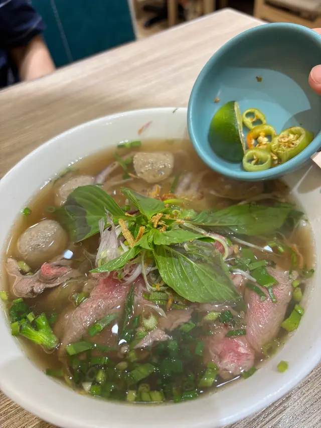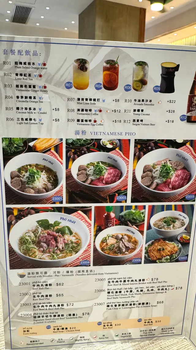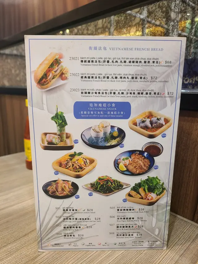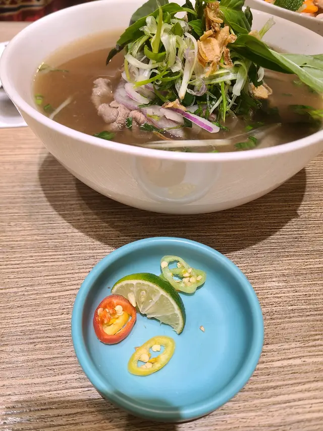 餐廳:越蘆越南牛肉粉地點:上環皇后大道西菜式:越南牛肉粉餐牌:星期日都有茶餐,主菜有湯粉,撈檬,飯類,街頭法包,配飲品4選1。可以追加地道小食,或者加錢要特飲。越南蛋餅香茅牛肉飯 $75 另加一越南蛋餅香茅牛肉飯好大碟,香茅牛肉份量好多,面頭加上脆脆同蔥油,下底墊有生菜。兩件越南蛋餅好厚身,係濃濃蛋味配有好多有咬口扎肉粒,食落多汁。伴有酸甜紅白蘿蔔絲解膩。白飯份量一碗。生牛肉湯粉 $65 另加一生牛肉湯粉大大碗熱辣辣上枱,牛肉多片,真係粉紅色上枱,肉質都好嫩,唔會太肥。湯粉類可選河粉/檬粉。河粉好幼身,非常嫩滑,分量好多!配個清清地既牛肉湯好味道。配料有芽菜,紫洋蔥絲,金不換,蔥條同蔥花,加添口感同味道。另上青檸同辣椒比你自己調味。呢度牛河真係好食。越式酸辣鳳爪 $28 另加一越式酸辣鳳爪一共6件,配有蕃茄,洋蔥絲,西芹,同脆脆,味道酸酸辣辣,好開胃。會安烤豬頸肉 $38 另加一呢個會安烤豬頸肉係跟餐小食。豬頸肉一客7片左右,熱辣辣上枱,燒得外脆內嫩,好食呀。配另上既酸辣汁更好味。面頭加上脆脆,伴有酸甜蘿蔔絲同墊有生菜,可解膩。跟餐飲品選擇都唔少,冷熱都得。凍香茅鮮橙茶 跟餐香茅鮮橙茶係香甜鮮橙味帶淡淡茶香,入面一大片鮮橙,少甜已經夠甜。凍話梅咸桔水 跟餐凍話梅咸桔水酸酸甜甜,好重話梅味,下底好多咸桔皮,仲有一隻桔仔,少甜已經夠味。凍越南老薑蜜 跟餐越南老薑蜜薑味好濃,都幾辣下,我叫左少甜。今餐食物保持一貫水準。茶餐特別抵食,無論主食同小食都好抵!新裝修後地方更加有私隱度,都好光猛乾淨。服務員態度友善。…Read More