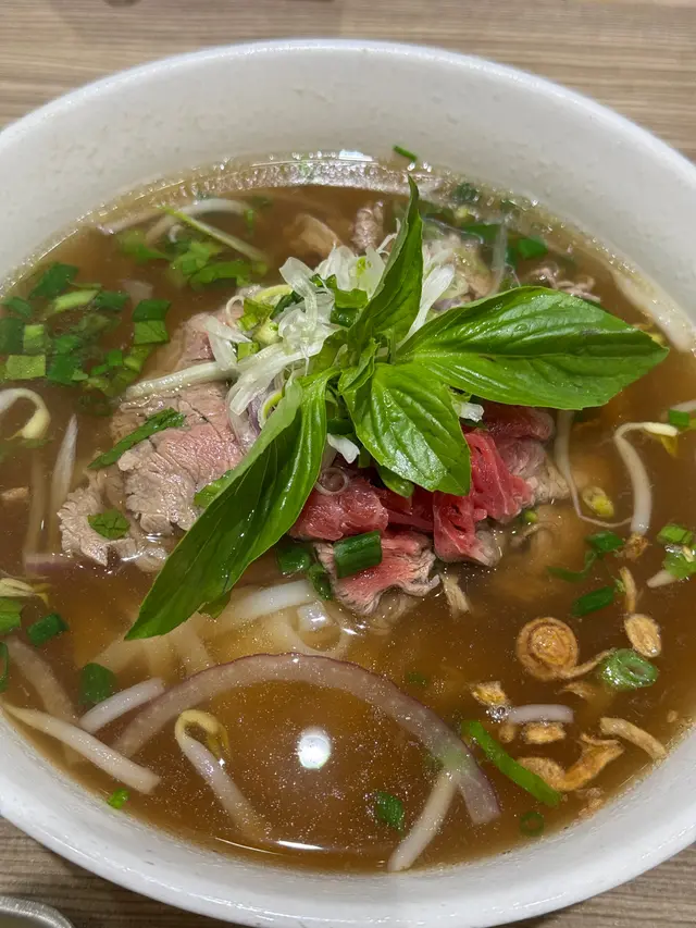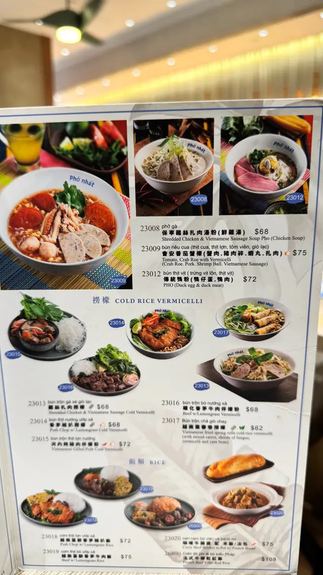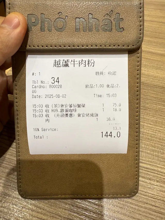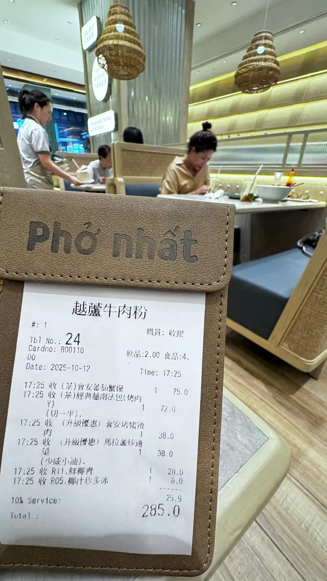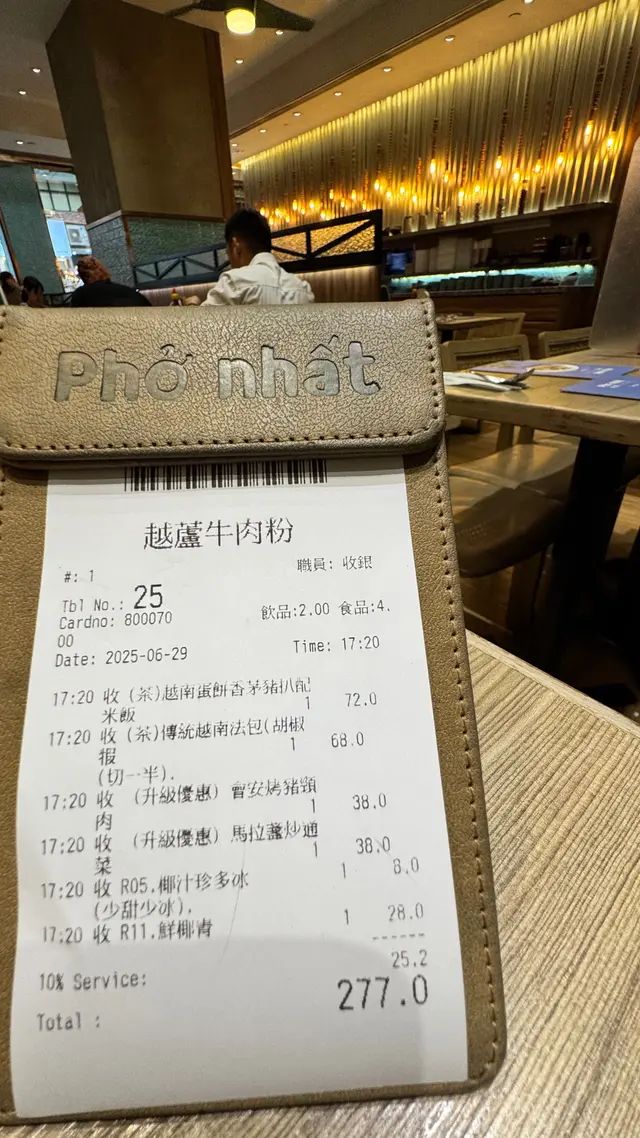 餐廳:越蘆越南牛肉粉地點:上環皇后大道西菜式:越南牛肉粉餐牌:星期日都有茶餐,主菜有湯粉,撈檬,飯類,街頭法包,配飲品4選1。可以追加地道小食,或者加錢要特飲。越南蛋餅香茅牛肉飯 $75 另加一越南蛋餅香茅牛肉飯好大碟,香茅牛肉份量好多,面頭加上脆脆同蔥油,下底墊有生菜。兩件越南蛋餅好厚身,係濃濃蛋味配有好多有咬口扎肉粒,食落多汁。伴有酸甜紅白蘿蔔絲解膩。白飯份量一碗。生牛肉湯粉 $65 另加一生牛肉湯粉大大碗熱辣辣上枱,牛肉多片,真係粉紅色上枱,肉質都好嫩,唔會太肥。湯粉類可選河粉/檬粉。河粉好幼身,非常嫩滑,分量好多!配個清清地既牛肉湯好味道。配料有芽菜,紫洋蔥絲,金不換,蔥條同蔥花,加添口感同味道。另上青檸同辣椒比你自己調味。呢度牛河真係好食。越式酸辣鳳爪 $28 另加一越式酸辣鳳爪一共6件,配有蕃茄,洋蔥絲,西芹,同脆脆,味道酸酸辣辣,好開胃。會安烤豬頸肉 $38 另加一呢個會安烤豬頸肉係跟餐小食。豬頸肉一客7片左右,熱辣辣上枱,燒得外脆內嫩,好食呀。配另上既酸辣汁更好味。面頭加上脆脆,伴有酸甜蘿蔔絲同墊有生菜,可解膩。跟餐飲品選擇都唔少,冷熱都得。凍香茅鮮橙茶 跟餐香茅鮮橙茶係香甜鮮橙味帶淡淡茶香,入面一大片鮮橙,少甜已經夠甜。凍話梅咸桔水 跟餐凍話梅咸桔水酸酸甜甜,好重話梅味,下底好多咸桔皮,仲有一隻桔仔,少甜已經夠味。凍越南老薑蜜 跟餐越南老薑蜜薑味好濃,都幾辣下,我叫左少甜。今餐食物保持一貫水準。茶餐特別抵食,無論主食同小食都好抵!新裝修後地方更加有私隱度,都好光猛乾淨。服務員態度友善。…Read More