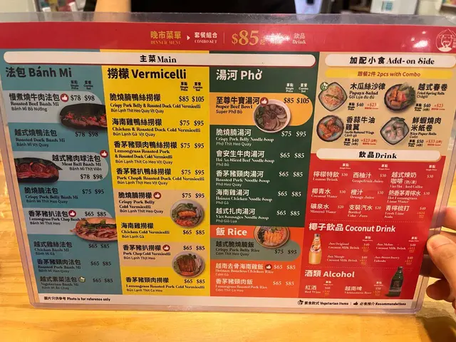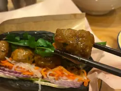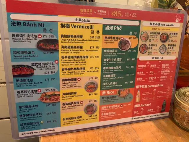 係灣仔發現有間越式小店幾吸引😍原來Cóm Bánh Mì 越.男已經經營左10年店內佈滿壁畫以及裝飾,環境充滿越南風情桌上備有各式醬料,風味滿滿🐷越式豬肉球法包🥖餐廳原創、獨家出品黑色法包乘載四顆豐滿的豬肉球,配上滋味醬汁,賣相吸引豬肉球混有洋蔥粒,咬落啖啖肉汁與洋蔥甜味法包外皮香脆內裡軟熟伴有扎肉酸瓜蘿蔔絲等配料,帶出清新的越菜風味🤤🍜香茅豬頸肉鴨絲撈檬豬頸肉片色澤金黃油潤,肉質彈牙🦆鴨絲處理誠意十足,帶有香脆鴨皮,鴨味香濃淋上越式魚露酸甜汁,在炎夏中享受涼拌酸甜開胃😋🌯越式春捲現炸越式春捲入口熱辣外層口感鬆脆,內裡芋頭綿密、滲出陣陣豬肉油香🐓香蒜牛油雞翼大隻雞翼脆炸金黃,充滿蒜香🧄食落肉質鮮嫩,令人滿足🍋檸檬特飲,味道清新酸爽帶有點點香茅香味,陣陣越式味道🍹西柚汁伴有粒粒果肉入口唔澀,甜中帶酸總結而言,餐點充滿越式風味之餘亦別具特色套餐份量豐富,性價比高👍🏻…查看更多
