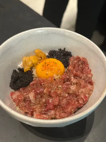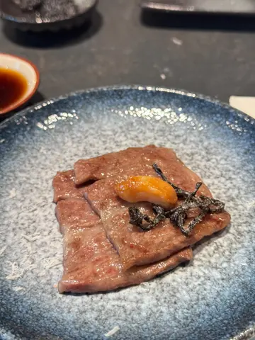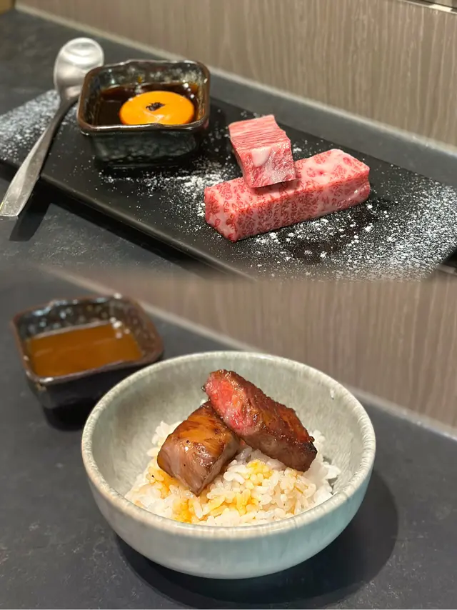 呢間餐廳被網路評選台北燒肉第1名🇹🇼香港為首間海外分店,秉承本店理念,主打人手現切日本A5和牛燒肉🐂🐮和牛衝擊8道菜套餐($820/ 位)💗極生牛肉佐帕瑪森起司底層係外脆內軟嘅蒜香厚多士,鋪上厚厚一層生牛肉他他,再刨上鹹香濃郁嘅巴馬臣芝士,最後以魚子醬點綴,味道好豐富🍞💗美國牛舌厚切厚切牛舌表面燒得焦香,入面保持脆嫩彈牙,最適合配搭自家鹽葱油或青檸汁👅💗日本A5和牛牛小排薄切和牛牛小排油花分佈平均,肉質軟嫩細膩,入口即溶,建議配搭鹽昆布或油封大蒜🧄💗日本A5和牛刺身選用和牛三角做成薄切刺身,帶豐富霜降油脂紋,配上獨家日式醬油同Wasabi,清新得嚟又有油脂香🥓💗日本A5和牛月見金磚將A5 和牛肉眼切成小磚頭,呈大理石油花紋理,一咬落去滿滿油脂同肉汁係口中噴發,蘸上生蛋黃同燒肉汁,口感更絲滑🥚由於油脂含量多,建議加埋白飯同意大利黑松露醬一齊食,中和油膩感外,更增添一份松露香🖤💗日本A5和牛海膽卷火炙和牛三角口感滑嫩,油脂豐潤,結合鮮甜嘅海膽,海陸滋味係口中互相交錯🧡💗日本A5和牛夏多布里昂和牛夏多布里昂屬於牛柳最嫩嘅位置,脂花紋路幼細,肉質最軟熟嫩滑,肉味濃郁且油香四溢,最適合配搭柚子燒肉醬,除咗提升肉嘅鮮味,柚子嘅清香可以中和油膩感🥩💗醬漬封門柳選用美國封門柳,用上自家醬油醃漬,肉質柔軟帶嚼勁,牛味濃郁之餘滲透醬油嘅香味🐃💗時令蔬菜籃日本山藥爽甜黏滑,意想不到同明太子美奶滋非常夾;翠用瓜爽脆清甜,配上特製辣椒粉增添風味;醬油牛油雜菌有齊雞髀菇、秀珍菇同金針菇,非常索汁🥙💗真理丼(+$150)真理丼集齊和牛他他嘅油香、海膽嘅鮮甜、魚子醬嘅鹹鮮、黑松露嘅香味、蛋黃嘅creamy,連同白飯撈埋一齊食,味道層次豐富🍚💗今歸仁西瓜意式手工雪糕 ($62)西瓜雪芭冰感清爽,啱晒食完燒肉後清下味蕾🍉💗菠蘿桶柑意式手工雪糕 ($62)菠蘿雪芭微酸清新,特別加咗柑橘肉係裡面,完全消除哂油膩感🍍💗紅提蜂蜜酒 (+$68)選用純正香港本地蜂蜜發酵,並加入紅提子乾釀製而成,入口帶葡萄香甜,散發出淡淡蜂蜜味,非常易入口🍇…查看更多