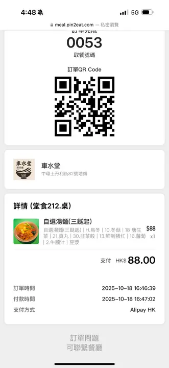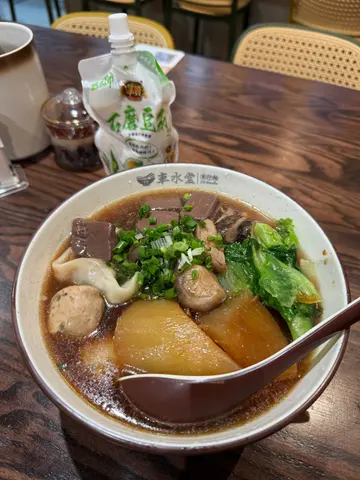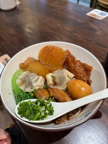 # 【食評】中環後街高質車仔麵 —— 車水堂 🚗🍜 今日陪媽咪行中環,陰陰天但心情唔錯,想搵間輕鬆啲又乾淨嘅地方食午餐。途經士丹利街,成排小食店之中,呢間新式裝修嘅**「車水堂」**特別醒目,乾淨、光猛、座位寬敞,仲有冷氣同音樂播住。對於中環後街嚟講,呢個環境真係難得。 ---## 🪑 **環境同感覺**坐入去之後印象好好,枱面乾淨,唔似一般車仔麵咁迫。櫈子新淨,靠窗位仲望到街景,整體氣氛有啲似「升級版港式茶記」。 員工態度唔錯,落單快捷,送上枱時仲會輕聲講「小心熱湯啊」,一啲都唔似匆匆忙忙嘅快餐店。 ---## 🍜 **主角:五餸麵(配牛腩汁+沙嗲汁)**我同媽咪都各自點咗**五餸麵**,湯底可以揀自己鍾意嘅味,我哋就試咗招牌組合——**牛腩汁+沙嗲汁**。 湯色深沉但清澈,未飲已經聞到陣香味。牛腩汁濃厚帶油香,沙嗲汁又增添一層堅果鹹香,兩者混合得好自然——飲落唔鹹不膩,好有層次。呢個湯底真係一試難忘。 ### 🥢 餸料方面:- **牛筋**:超出預期!爽彈又腍滑,炆得好入味~一咬就知處理時間足。 - **豬軟骨**:肉質滑,入口即散,醬香啱啱好。 - **牛腩**:厚切實淨,唔乾唔韌,食得出用心炆。 - **雞翼**:皮滑肉嫩,冇腥味,加湯底一齊食有驚喜。 - **貢丸+腐皮魚卷**:彈口、熱辣辣、香口得嚟唔油。 碗麵份量仲好大!我揀咗少麵份量但都幾乎食唔晒。麵條煙韌唔糊,兜起嚟掛湯一流。成碗麵食到一半都仲保持熱氣滾滾,口感無走樣。 ---## 🍢 **小食:沙嗲金錢肚+豬腸**金錢肚切得厚但冇韌,沙嗲味唔係死咸果隻,而係香中帶甜,滷得非常入味。 **豬腸**好多餐廳都會處理得腥,但呢度真係乾淨無怪味,滷汁香濃入心。兩樣都墊住生菜上枱,擺盤都幾企理,唔似一般街坊車仔麵咁「求其」。 ---## ☕ **飲品:凍咖啡**我點咗**豆漿**,媽咪試咗**凍咖啡**。 講真,出奇地好飲!凍咖啡好濃郁、有回甘。估唔到一間車仔麵舖會有水準咁高嘅飲品。 豆漿亦都好香滑。---## 💬 **總結**整體體驗超出預期。 以中環地段嚟講,呢間車仔麵店嘅環境真係「乾淨企理+有心思」, 食物質素明顯用心打造。 ⭐ **推介指數:9/10** - 環境:乾淨舒服 - 湯底:香濃有層次 - 餸料:新鮮入味 - 飲品:水準以上 - 價錢:略貴但合理(兩個人 $255,位置喺中環唔算貴) 📍 **車水堂 – 中環士丹利街 82 號地舖** 如果你喺中環行到攰,又唔想食快餐或者太heavy嘅西餐, 呢間**整潔車仔麵店**真係一個好選擇。陪屋企人坐陣食返碗熱湯麵, 簡簡單單,一樣可以好幸福。 ❤️…查看更多