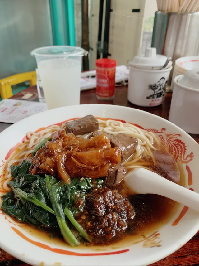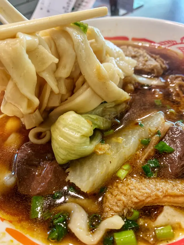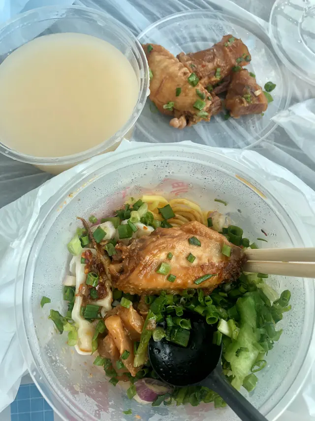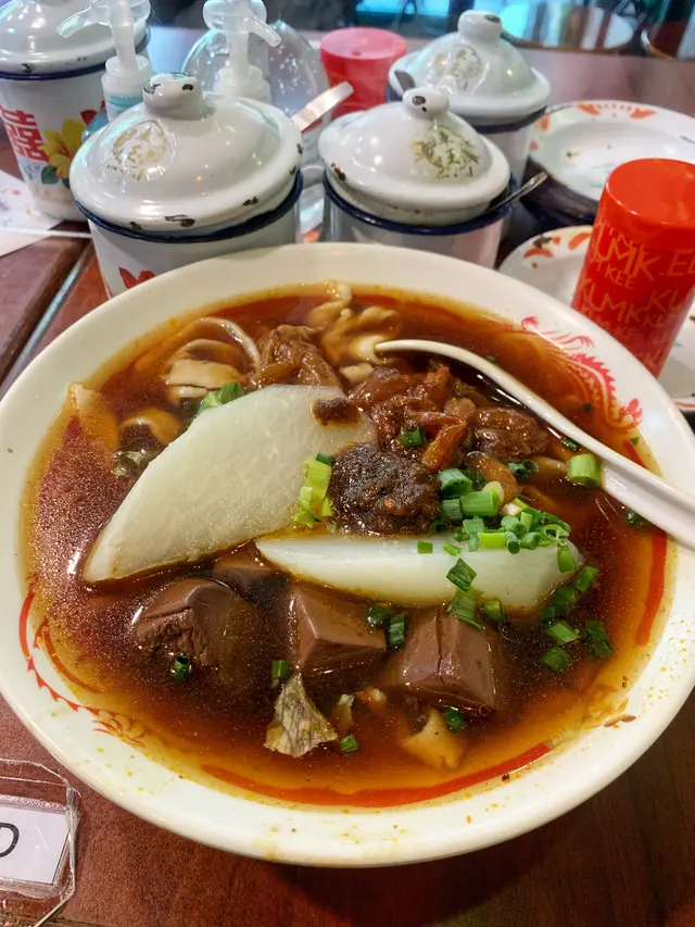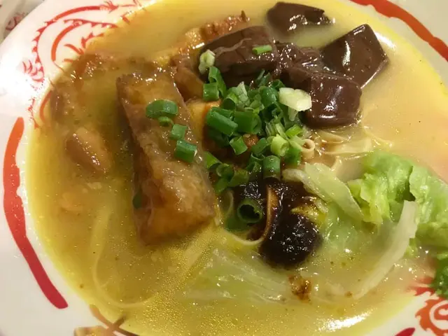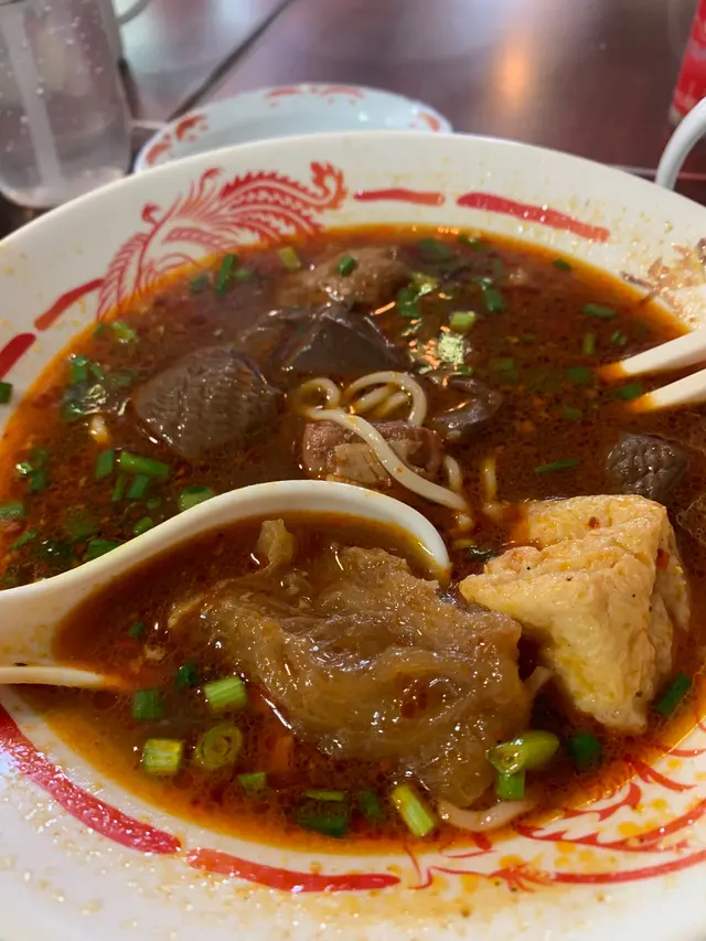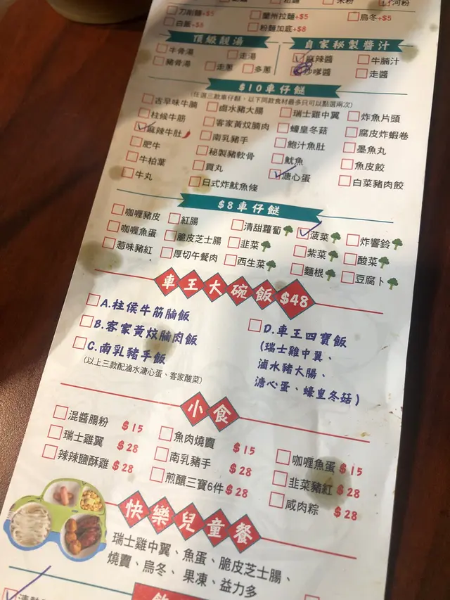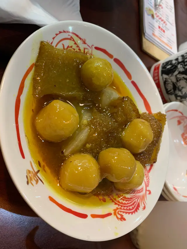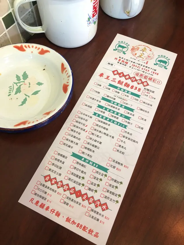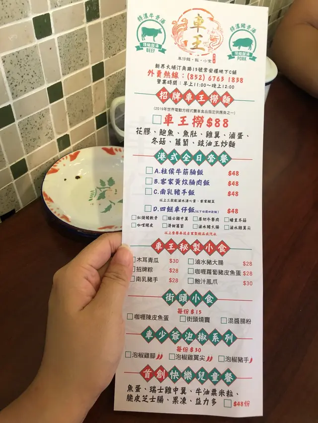要急急七點前到達,遲到就人頭擁擁,食客一浪接浪殺到,無位坐啊!可口可樂,少可飲酒到天光要支回魂曲!黃昏四點的早午餐一剔過,加 $8 蚊有可樂,食四餸有免費可樂。整間舖瀰漫著抽糞車的異味,係咪暴屎坑呀?行出到門外就無味喎。係咪好唔想我黎幫襯啫?好采有睇單,漏走蔥漏雞翼。終於碗麵到喇,師傅再漏紫菜。轉晒師傅全部大媽?越來越難食,以前係幾個肥仔好食多倍。其實我係要鴛鴦,有剔幼麵及河粉的,不過四眼妹妹似乎先入為主,既然都已打錯,懶得再改啦。最後結果係食埋煎釀三寶都未夠飽,唯有飲多幾杯酒填充夠吧!兩溝鴛鴦都唔識煮?先烚麵後烚河乍喎。嚴禁戀溝,加錢都不可以,只準單點﹗無所謂,那我就叫一碗麵一碗河粉,火火地。寫到明走蔥,無得食鴛鴦再無走蔥,火上加火更加火﹗嚴禁兩溝?我要食鴛鴦無人阻到我,最多叫兩碗自己溝﹗竟然仲有隻烏蠅飛來飛去,極度討厭。座位迫迫夾夾,阿伯您大舊就唔好坐係我後面,其他位係唔坐,係要背對背頂住晒,比餐安樂茶飯我食得唔得呀!辣椒油,咸咸蝦米微辣微香而油感重,不喜歡這味道試一次便夠。泡椒雞腳,爽脆筋彈,咸鮮中辣刺激。咖哩陳皮魚蛋,陳皮味到位清香,其實配蠔油才是絕頂!咖哩厚厚黏黏甜味強而辣味微弱,肉質很削不彈假爽,散發少許腥味。鮑汁雞腳,為何比麵還要耐?又不用翻熱。原來有烚生菜墊底,原諒您啦。爽爽的雞皮及筋肉未見炆得黏膠,雞腳的豉油味強烈,鮑味呢?車王撈,咸王撈麵受不了,咸王雞中翼受不了!嫩滑雞皮結實白肉,滷得太咸浪費了!溏心滷蛋出色,晶瑩剔透,清香不濁,蛋黃甘甜黏黏。即食鮑魚厚厚彈彈,鮮鮑味突出。巨大蘿蔔兩舊腍腍爆水,高湯入味,表層有點縮有點塌。鮮冬菇滑嘟嘟少少彈,用蠔油炆過呢。魚肚吸汁多水索索湯更美味,花膠大大塊嫩嫩滑溜。竟是豉油皇炒麵底,有誠意估您唔到。嚥韌乾爽炒麵怪您過份重口味,硬著頭皮照食可也!醇厚濃郁豬骨清湯清甜可口,豉油皇炒麵食到尾聲已到達極限,沖沖湯洗洗咸,舒服許多。煎釀三寶,何解普通的煎釀三寶已等 10 分鐘有多還未到達?使得我心猿意馬忐忑不安,終於滾熱辣送到,感受得到的高溫,新鮮出爐剛剛炸起,真身為炸釀三寶!色澤光亮鮮明,索一索肉香撲鼻,明顯地不是翻炸乾屍的呢!續一擊破,先由紅腸開始。肥美厚切大紅腸,清甜的肉味絕不咸澀,尖椒炸得透徹全熟,清甜味出眾,爽脆多汁美味無得彈!豆腐皮脆肉嫩,白肉滑溜不得了!厚厚的鯪魚滑,搽得均勻非常,封得密實沒有虛位,不是馬虎的薄薄的一篤仔,炸得香口彈彈,乾爽不油膩,滿有鮮魚味道可口不腥嗅,淋上芬芳甜豉油,充滿生命力!古祖味牛腩麻辣牛肚麻辣牛柏葉特濃牛骨湯麻辣汁幼麵,古祖味牛腩即是懷舊車仔麵味道?果然一模一樣同出一徹,幸好不是太腩碎腩邊!鬆化完整的一舊舊牛腩粒,五香味濃合格。麻辣牛肚金錢肚爽爽彈彈,微弱的辣味不太感覺到,五香反而更突出。麻辣牛柏葉,烚得剛好不超時,爽彈無比散發少許雪味呢。微辣的麻辣汁還沒有跟麵跟湯撈勻便大大啖一次過塞入口!微辣微麻迅間消散,添味真的不錯。濃郁香醇牛骨湯,有著潮州麵檔的影子,淺色極幼麵詐看還以為是米粉,我喜歡食硬麵要有嚼勁的。極腍的質地,十分濕滑,不彈帶少少爽。即時聯想到紅磡張榮記蝦子麵,跟他們的高檔優質蝦子麵非常相似呢。鮑汁魚肚惹味豬紅客家黃炆腩肉沙嗲醬特濃豬骨湯粗麵,豬骨湯係有料到既。索價 $10 蚊條魚肚,長方條形索盡鮑汁,爽爽綿綿趙得舒服。惹味豬紅一片片,先嚥韌一咬爆開,沒有特別的感覺。客家黃炆腩肉,硬硬地鞋鞋地咸咸地。廉價車仔麵檔的無味紙條全蛋麵,沒有彈感,鞋鞋不香,幸好沙嗲醬香甜拖著豬骨濃湯齊齊吸啜,才不至評於劣質。豬骨湯黏稠味濃十分出色,撈埋沙嗲醬點綴一下生色不少。紫菜柱侯牛筋墨魚丸牛腩汁特濃牛骨湯河粉,阿妹我要走蔥架,激死我。費事騰來騰去浪費時間,自己挑走好過!河粉堅得好好味,綿綿滑溜溜,拖著濃郁醇香的腩汁牛骨湯啜啜啜,滿足滾動!夾著咸香爽脆紫菜齊齊啜更是一絕。墨魚丸粉口黏黏的廉價墨丸,柱侯牛筋碎濕濕軟滑有點過咸。厚切紅腸潮式滷豆腐腐皮炸蝦卷特濃豬骨湯河粉,次次湯底濃厚香甜,但依位四眼嬸煮出黎淡如水!即落五羹辣椒油都係無味,辣椒油唔掂,湯底又唔掂。紅腸及滷豆腐都有煎過夠誠意,紅腸超高質肥美嫩彈清甜還有焦香味道,使得我愛不釋手食唔停口!潮式滷豆腐平凡水準食完都唔記得,外皮嚥韌裡面藏著豉油水般。腐皮炸蝦卷味道似魚餅多過蝦卷,結實咸咸地無特別。望穿秋水我碗幼麵遲遲未送到,所有餸菜都經已食完段時間先捨得登陸。黃金炸魚皮滷水溏心鴨蛋咖哩魷魚特濃豬骨湯幼麵,湯底一樣淡如水!黃金炸魚皮極香脆,原來係咸蛋黃略咸,浸浸湯洗洗去舒服多了。滷水溏心鴨蛋,甘甜蛋黃好味道。咖哩魷魚勁彈震騰騰,卜卜脆味道香濃咖哩味。機會黎喇飛雲﹗合體完成。湯底實在淡茂茂水汪汪,麵淡粉淡!辣椒油有蝦米咸咸竟然不辣,非常失望!完全提不起興趣,食慾消減得非常迅速,但不可以浪費食物的,馬虎求其全部吞落肚,食完即閃沒有任何留戀。紅燒豬軟骨南乳豬手滷水豬大腸咖哩醬特濃牛骨湯出前一丁,我寫明多汁都只得一篤仔,既然漏走蔥及漏雞翼,連多汁都漏埋都可以理解。紅燒豬軟骨大大舊啖啖肉,紅燒汁甜甜醃味濃厚膩滯,鬆化的瘦肉包著軟骨脆卜卜。南乳豬