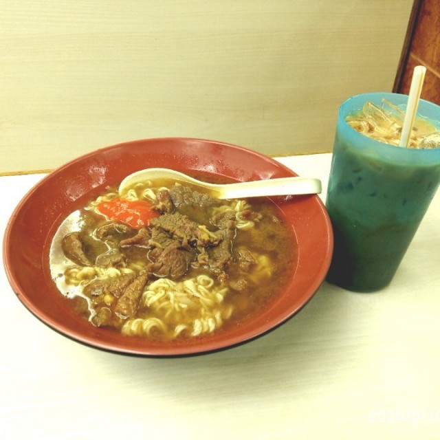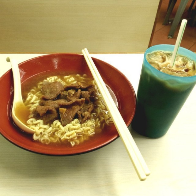 下午茶餐:沙爹牛肉公仔麵+凍奶茶
