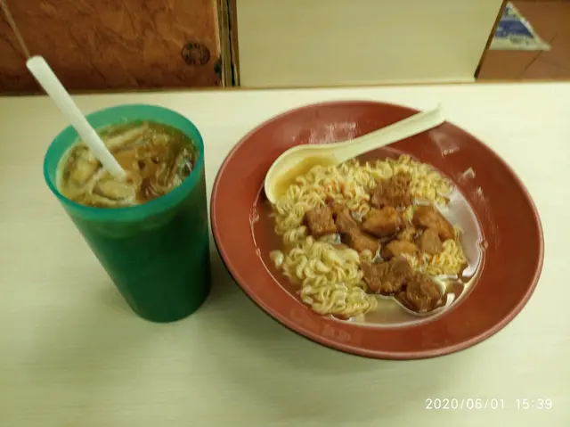 下午茶餐:五香肉丁公仔麵、凍鴛鴦