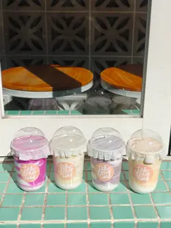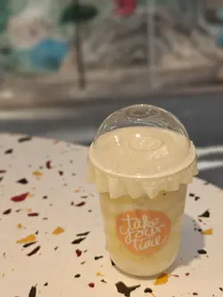 小小茶飲店,幾個座位,外賣為主。店面乾淨明亮,半開放式吧檯,看得到製作過程。人流不斷,來取外賣的騎手也多;人手充足,落單後很快就做好。店員有耐心,會按喜好推薦口味與甜度。飲品以新鮮水果為主軸,糖只用自家熬的桂花冰糖,不放化學添味。主線五大系列:優格果昔、優格蓋茶、水果乳酸、超級水果茶、以及水果冰茶昔。這次幾乎點滿。當季紅提優格果昔,優格奶香厚,紅葡萄果肉爽脆,質地濃稠但不膩。優格蓋茶選了芒果、芒果熱情果與藍莓,可調甜度與茶底。我們用桂花烏龍,藍莓那杯配茉莉綠。攪勻後入口,優格比例較輕,茶香、果香與奶香比例剛好,甜度克制,清爽耐喝。特大杯超級水果茶份量驚喜,杯中滿是切塊新鮮水果,看得見、喝得到。整體走天然路線,味道乾淨,選擇多,價錢合理。相比珍珠奶茶或重甜特飲,這裡更適合想喝得清爽的人。…查看更多