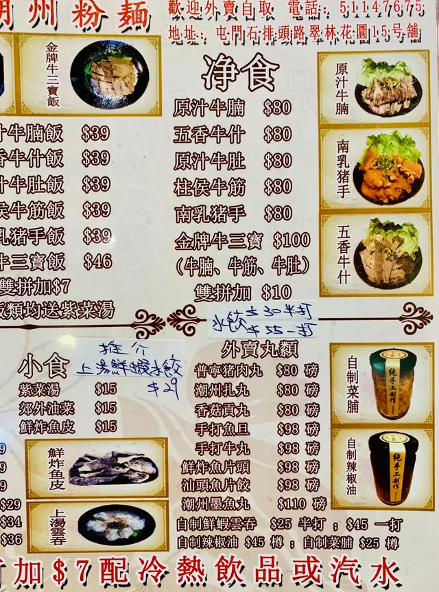 輝記潮州粉麵 (屯門) 網址: https://s.openrice.com/QrbS0RPG800 地址: 香港屯門石排頭路15號翠林花園地下15號舖 電話: +852 51147675