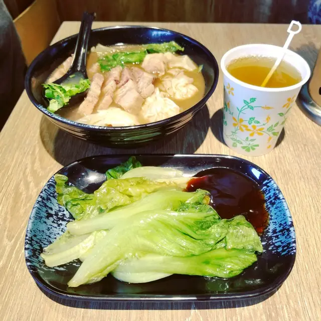 有日去朋友屋企附近食飯,呢間餐廳主要做街坊生意,佢成日都幫襯開就係度開飯。餐廳環境比較細間,無卡位,坐得唔太舒服。不過都知道香港租金貴,粉麵店好多都係咁格局。餐牌種類都唔算太多,但基本野都有齊既。朋友叫左碗雙拼豬手牛筋麵,份量都算OK,豬手同牛筋都煮得幾淋都易咬開。雙併雲吞牛筋麵啲雲吞略嫌有少細粒,一粒雲吞半隻蝦都無,肉餡有啲少,有啲到喉唔到肺感覺。而且雲吞餡裡面啲花生油香味都唔係好夠。麵既質地還好,如果蔥花上面加多少少炸蒜蓉會更加香。牛筋都燉煮幾淋既,而且份量都夠。呢個都值得一讚。油菜呢度要講下,味道一般般啦。如果有啲菜葉個部份會好啲。香港都特別多粉麵舖,呢間質素不過不失,起碼無食到未煮熟既雲吞先。如果要比較既話算係中規中舉個種,如果自己一條友諗唔到去邊食,都係一個不錯的選擇黎既。…查看更多