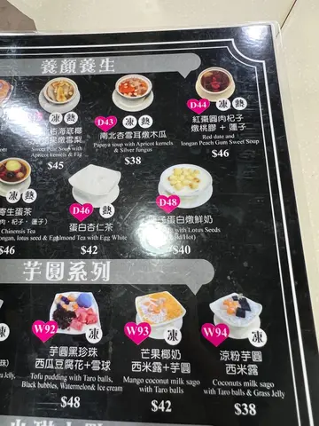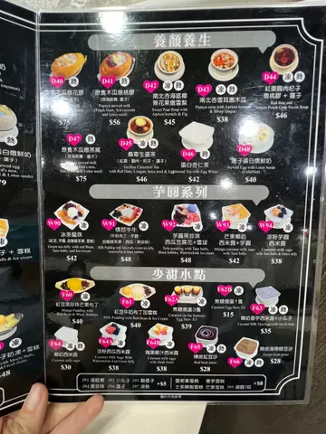 呢間喺西營盤德輔道西嘅甜品店我哋嚟過三次左右性價比唔算高價錢仲可以話偏貴不過由於呢頭附近冇乜甜品店所以我哋嚟到呢頭要搵甜品食時就會嚟呢度最平嘅係中式甜品紅豆沙同綠豆沙,各$28其餘大部份嘅甜品都要$45以上MM爸點咗涼粉芋圓西米露($38)蕉媽點南北杏雪耳燉木瓜($38)味道正常,賣相就一般,同餐牌上嘅相片明顯有啲出入總括來說,性價比一般不過冇得揀都會食輝記甜品 (西環)西環西營盤德輔道西268號地下