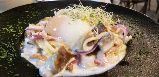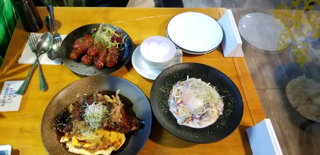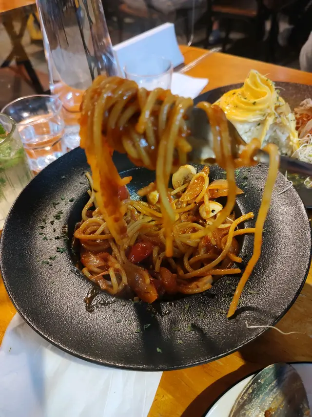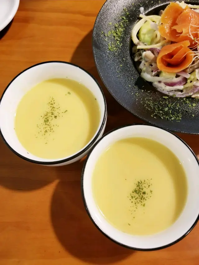今日黎到屯門想搵下食西式野嘅餐廳,而咁啱就見到呢間良心小店,所以就試試佢🍽,晚餐價錢相宜,性價比高,而且等位都唔算好耐,推介新界嘅朋友仔黎食😽~🥢黑松露雜菌意大利粉🍝 $76 醬汁份量都幾足夠 , creamy得黎甜甜地, 好香黑松露味 , 雜菌都多 , 好味到我地勁快就清左碟意粉🫣🥢漢堡扒蛋包飯🍛 $88咖喱汁係日式風味嘅🇯🇵漢堡扒肉質幾好 ,有牛味🥩唔係cheap cheap肉,蛋包飯就正正常常👍🏻🥢番茄湯🥫 +$10跟餐加左兩個是日餐湯,個日係番茄湯 , 味道唔錯,好濃茄味🍅不過就比較酸,係好開胃嘅湯另外,見到餐廳有幾款蛋糕🍰下次黎會試下😋…查看更多