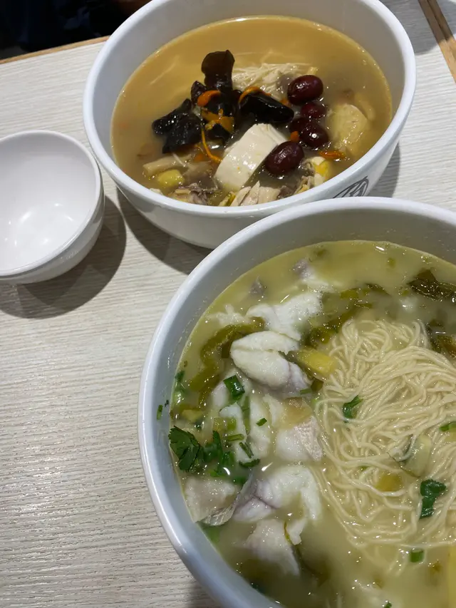 知道此店很久,但一直沒有機會嚐試,今次終於一嚐滋味。當日,店面只有一位店員營運,所以招待店內堂食的客人,也分身不暇到收銀位置幫客人點外賣。引致流程不順暢,作為客人只好耐心等待。第一次光顧,我點了手工麵,外形像港版拉麵,咬口易斷,如果再光顧我會選擇薯粉,可以吸盡湯汁的味道。今次分別點了兩碗麵和一個小食。酸菜生魚手工麵如果元朗區吃酸菜魚,這不是第一選擇。沒太大特色,魚肉內有骨,不是一咬即溶的龍脷柳。藥膳養生雞手工麵第一口我是嚐湯頭,眼見湯底材料包括有紅棗、蟲草花、雲耳,酒味香濃,雞肉和麵量都不算少,,女士完成一碗應是十分滿足。芥末魚皮爽口彈牙,辣度點了小辣,感覺辣味突出,下酒一流,個人認為比麵更出色。📍元朗大棠路48-72號安福大樓地下9號舖…查看更多