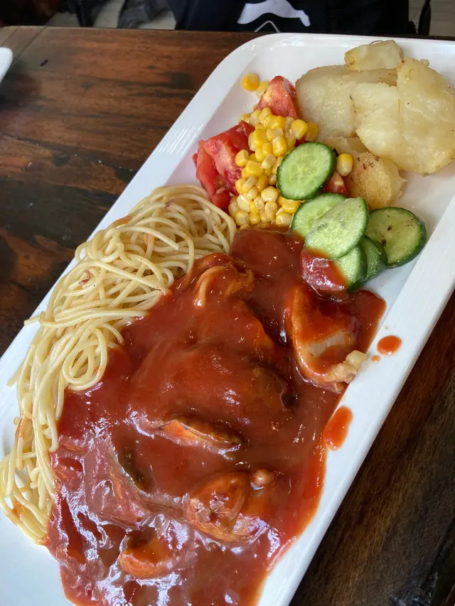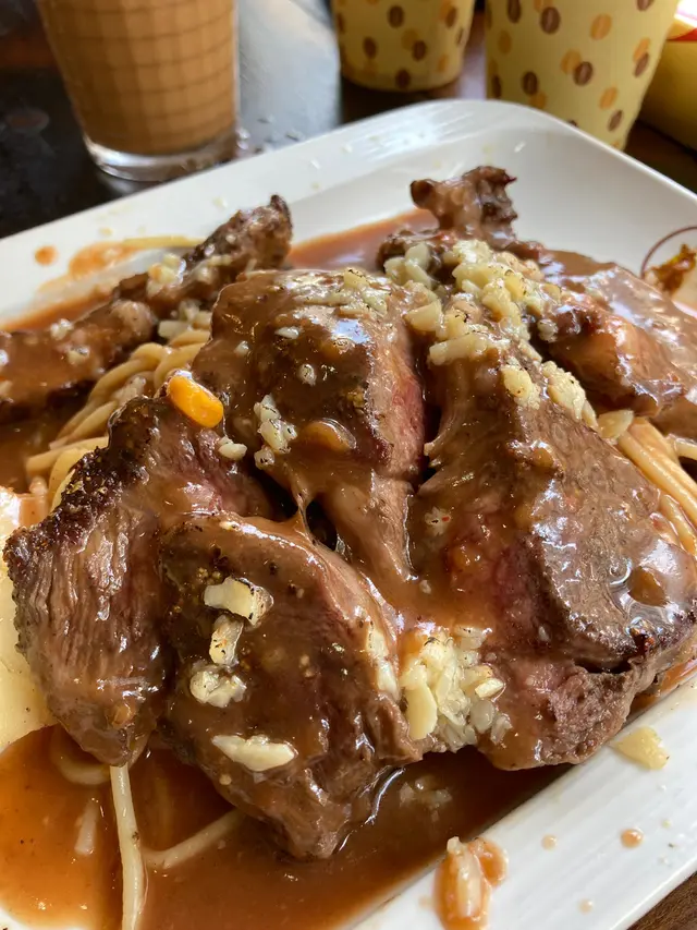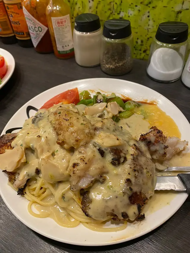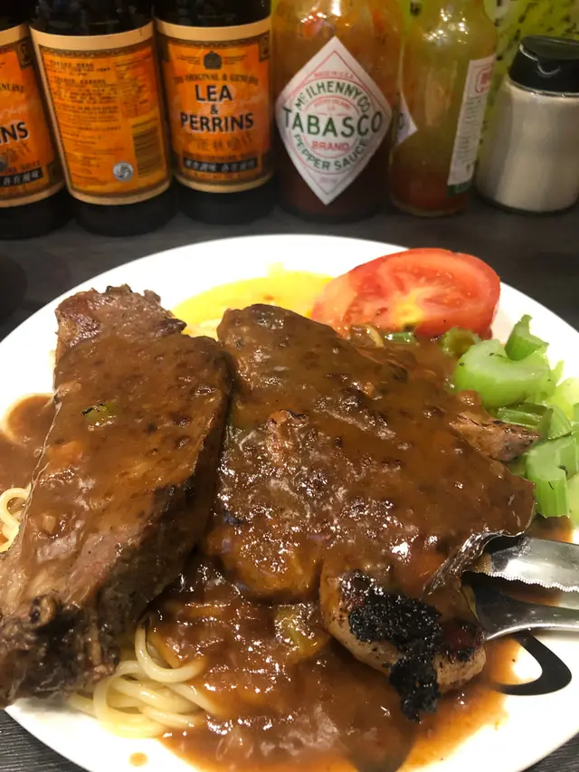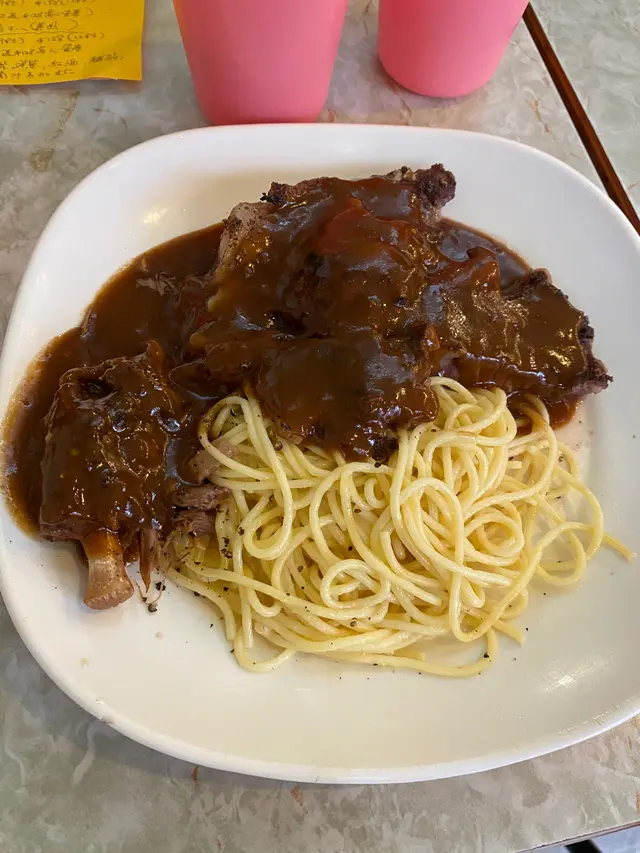 好耐冇咁投入食一頓飯啦,咋日試咗間餐廳,開心到唔得喇 🥳!洋蔥汁安士牛扒配上意粉,簡直係滋味滿分!牛扒唔止外皮煎得香口,入面嘅肉質嫩滑得嚟又帶咗少少嚼勁,咁香濃嘅洋蔥汁,真係岩哂我杯茶。每啖牛扒,洋蔥味道都好夠晒,真係勁正💯!凍奶茶就冇得輸,係咁滑咁香,茶味夠晒勁,簡直係解渴又解饞嘅完美選擇!估唔到慢工出細貨,兩位店主剪燭夜戰,一手一腳忙嗮,睇得出佢哋真嘅放心機整飯。雖然等嘅時候有啲心急,我鐘意食物用心準備嘅感覺,咁嘅味道值得等!又係啦,對我哋呢啲放工食飯嘅人黎講,可能就要做好心理準備,唔可以太趕💨。不過啖啖肉,真係食到個肚好滿足,滿足到都忘記左啲油煙味。返到辦公室嗰陣,胃口仲係好開心嘅😋!下次要試埋佢哋嘅其他拼盤,仲計劃緊同幾個老友記一齊去,咁就可以食得更加盡興啦!…查看更多