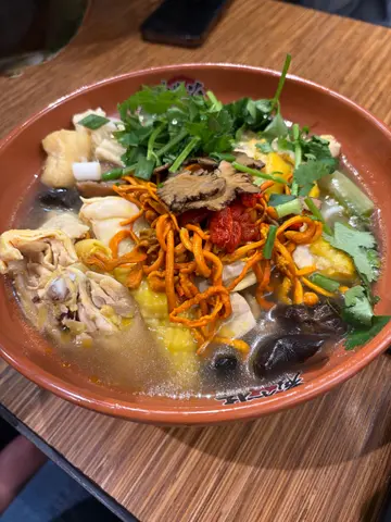 藤椒魚皮 $58沒有很多地方有這道菜式,這道菜冷盤,爽口魚皮加上青花椒以及辣油味道很配合,令人在三回。椰子雞湯米線$59 上台的時候便聞到很濃烈的椰子香味。湯是濃郁的,但是米線還米線,雞還雞,湯還湯,雲耳還雲耳,冬菇還冬菇,最入湯味的是豆卜和腐皮,整體感覺是把配料放在一起然後放上湯,有點失望。懷舊藥膳米線$59這個跟椰子雞湯米線是一樣的,配料跟湯是沒有關係。雖然湯的藥材味很濃烈,但是吃下去的感覺是全部分開的。同一條街另外有一間台灣的藥膳湯麵店,之前吃過。湯,麵及配料可融合在一起吃,如果兩間比較,台灣的那間會更出色。#小師奶 #美食 #尖沙咀 #不推薦…查看更多