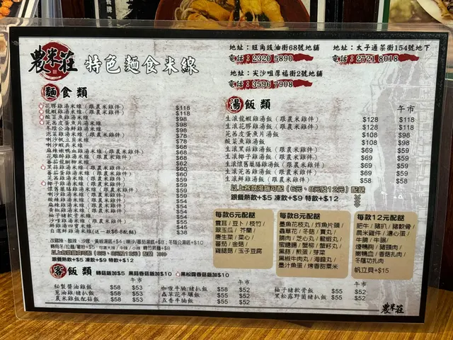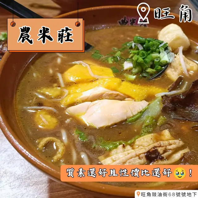 農米莊 (豉油街) (旺角) 網址: https://s.openrice.com/QrbS0oda700 地址: 香港旺角豉油街68號地舖 電話: +852 23205890