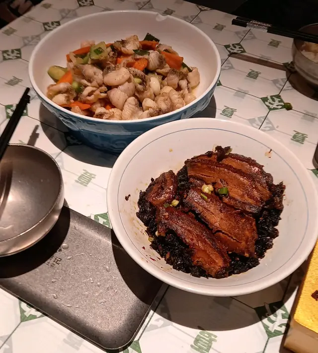 今日我去咗黃大仙一間餐廳,叫佐幾樣湖南菜。首先係 鮮炒黃牛肉,真係炒得好香,牛肉鮮嫩,唔辣又少油,食落去口感非常好!跟住係 糖醋酥肉,外脆內嫩,酸甜嘅味道正好,食完一塊仲想再嚟一塊。鮮燜腐皮都唔錯,腐皮煮得剛好,吸咗湯汁,味道入面好豐富。再嚟就係 蒜蓉空心菜,蒜香味十足,菜心爽口,清新又好食。飲咗碗 松茸土雞湯,每位都有,湯底鮮甜,松茸味道好濃郁,真係好開心。仲有試咗老長沙臭豆腐,少辣,外脆內軟,配上醬汁,味道一流!最後係蒜蓉粉絲蝦仁,蝦仁鮮甜,粉絲吸咗蝦汁,食落去超滿足。…查看更多