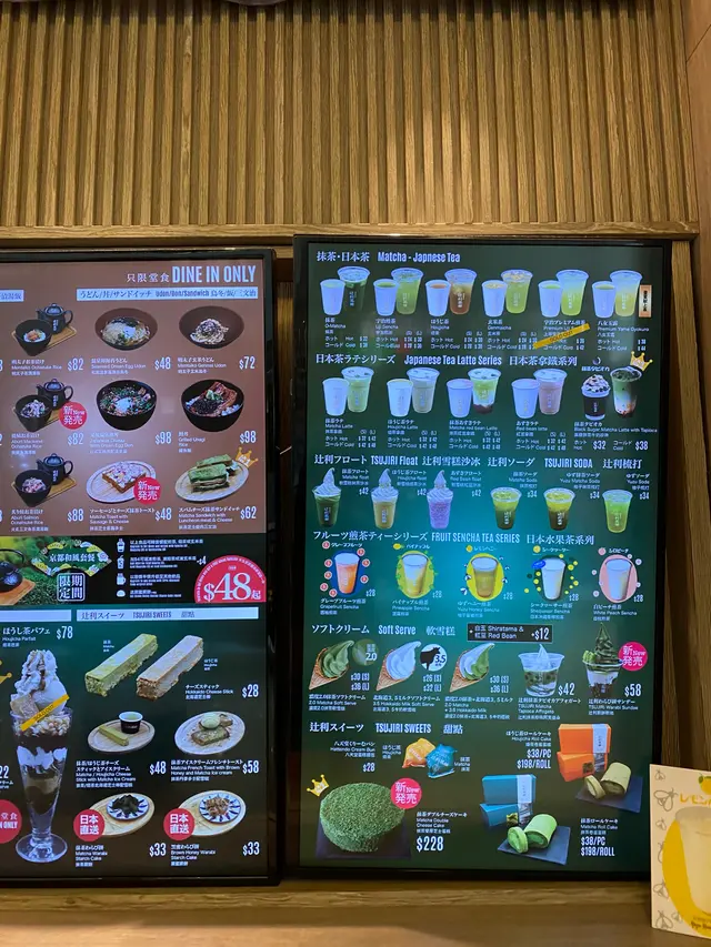 辻利茶舗既裝潢非常日式🇯🇵用左好多木同布簾既設計,加上簡約既色調燈光柔和望落好舒服,而且座位闊落有空間感仲有充電位,可以慢慢傾慢慢食,感覺好寫意