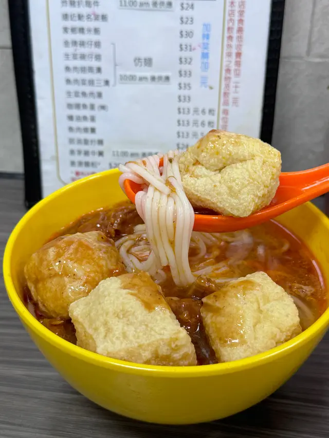 老實說,筆者是一個老派人,還是懷念童年時看著那些大叔,拿著一把小刀,一團團的片著一大碟魚肉膠,功架十足,魚肉團團肉片落那一大盆上湯,現在看見粉粒魚肉,從前魚肉湯的形象已不再⋯⋯桌上可以自行落胡椒、麻油。味道中規中矩,未見驚喜。