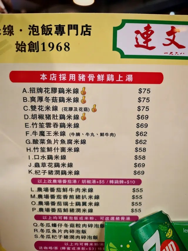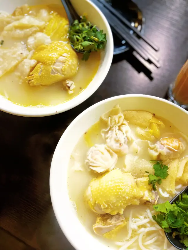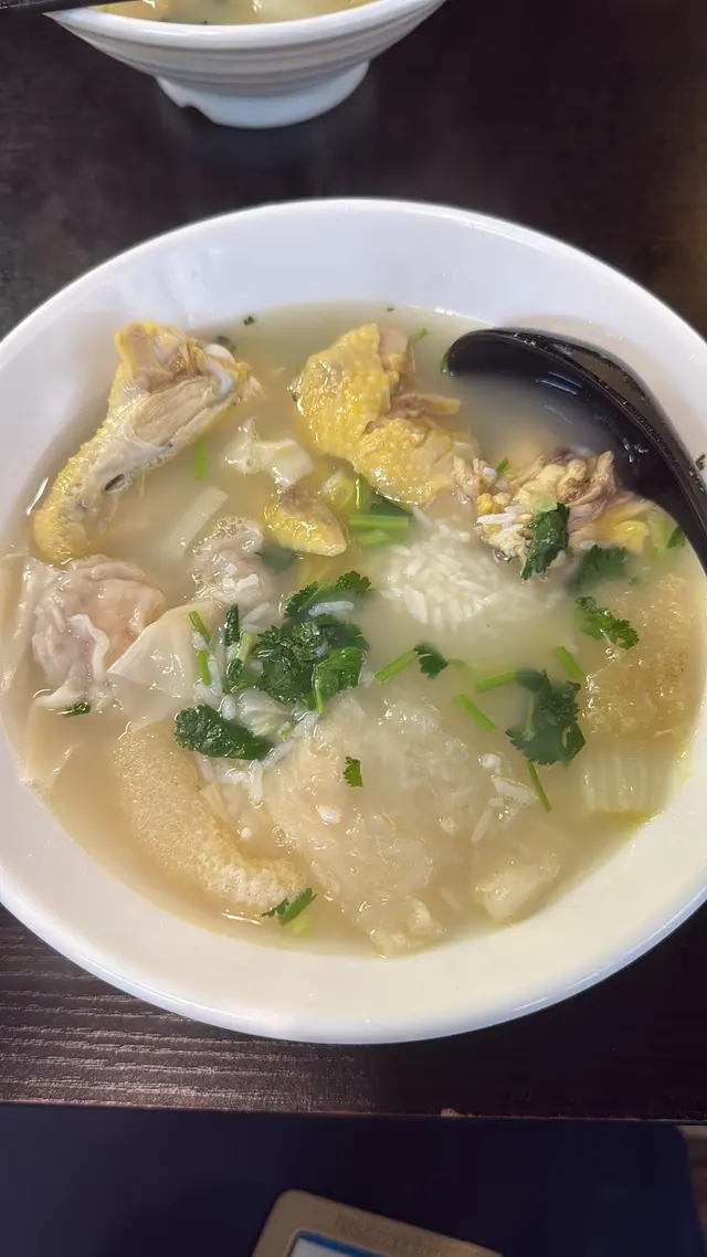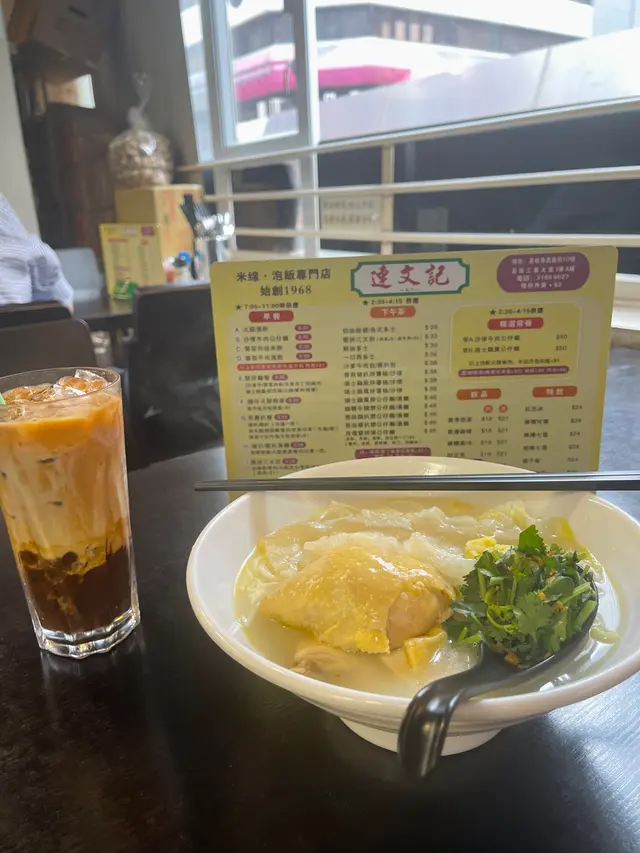 今日午餐去左連文記,這湯飯餐廳就聽得多,但今次第一次幫襯。一睇餐牌,以為這些雞湯類只能跟米線,而湯飯就只有冬瓜,但原來雞湯都可以轉飯嫁,所以就叫左「竹笙雲吞雞湯飯」$60幾蚊嘅午餐還跟飲品🥤,都算抵食。先試湯底,甜,有雞味,清清地又唔好油