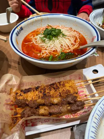 雖然經常路過見到呢間餐廳,但係就真係第一次去食,好在早少少到門口取號,6點後都真係比較多人排隊...第一次去,大覺好多款式都比較吸引我地,但可惜我同朋友兩個人又唔算太餓,於是就叫了一個主食& 幾款小食類>肥牛番茄湯面+白飯<熱鍋上,跟個小火可以暖住,感覺不錯,沒想到還有薯粉👍 ,份量絕對的十足,味道不過不失。👍👍👍>牛肉串< 我地口痕嘅選擇,味道可以>鍋巴土豆<我地都很有興趣想嘗試,結果挺有驚喜的,配上它的醬料和土豆(薯仔)很夾,我自己都忍唔住黎撈埋白飯👍👍👍👍>爆醬豆腐串<好奇嘅選擇,但都覺得好好食,不過對不能食辣嘅朋友黎講系有D辣,我都食到一半頂唔住辣椒油嘅勁道👍👍👍>蜜糖炸雞扒<可能是因為跟餐加,份量比較小,不要太期待>琥珀冰粉<喜歡食冰粉類嘅我,是非常的滿意👍👍👍👍沒有影太多相,小分享一下。呢間餐廳系香港地實在是價錢貼地,味道也不錯,值得再去和推介的餐廳☺️☺️☺️…查看更多