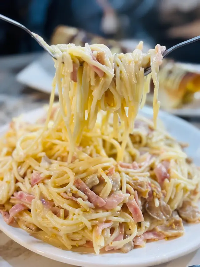🍝 經典卡邦尼意粉 $𝟱𝟭★★★★★♥︎ 一碟意粉已經係2-3個人嘅份量♥︎ 味道濃郁,雖然芝士味唔特出,但好creamy同蒜香♥︎ 火腿、菇同洋蔥份量幾多,夠一啖意粉一啖餸♥︎ 意粉口感正常,唔會過淋過硬♥︎ 呢個價錢同份量有呢個味道已經超出晒預期!🌮 芝士大蝦墨西哥捲餅 $𝟯𝟳★★★☆☆♥︎ 好清新,食意粉食到膩,食下呢個墨西哥捲餅即刻解除油膩感,再有胃口繼續食♥︎ 材料簡單,有烚蝦、椰菜絲、芝士,精粹係上面嘅醬汁,芥末醬加蜜糖,令捲餅又鹹又甜,鍾意食鹹甜嘅人會鍾意~♡ 美中不足係捲餅烤得唔夠熱同脆,唔知係咪因為想凍食🧀 水牛芝士條 $𝟮𝟵★★★☆☆♥︎ 芝士條好夠熱,做到拉絲效果,好正♥︎ 而且芝士味好夠濃推介指數: ★★★★☆✿ 小店型式,裝修得都靚✿ 最讚係大件夾抵食,而且唔馬虎,超出預期質素,好好食!✿ 水同碗碟餐具係自助式✿ 去收銀點餐,比錢後拎單埋位等食✿ 經過太子同深水埗都可以試試~✿ 我會再回頭嘅餐廳!…查看更多