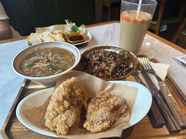 𓄳𓄳𓄳位於將軍澳中心的「那個ㄋㄚˋ ㄍㄜ」,以有質感的裝潢營造出復古的用餐氛圍。餐廳主打臺南家常風味,從便當到拌麵,每道料理都展現出對傳統味道的堅持。𓆰那個滷香雞球便當 $86必點推介!滷香雞球便當以惹味的雞球為主角,雞肉軟嫩入味,外層薄薄的鹽酥粉增添鹹香口感。配菜方面,香滑的炒蛋、炒粉絲與時令蔬菜的組合,令整體口感更豐富。𓆰嘉義雞肉拌麵 $88嘉義雞肉拌麵選用關廟扁麵,雞絲仍保持肉汁,麵體彈牙有嚼勁。冷吃方式讓醬汁更易附著,乾蔥芝麻等佐料不但香口,更增加香脆口感。𓆰香酥花枝丸 $22香酥花枝丸外皮炸至金黃酥脆,內裡仍保持花枝的鮮甜彈性,撒上的鹽酥粉更添風味層次。𓆰白桃果粒冰茶 +$15白桃果粒冰茶甜度適中,加入仙草更增添清爽。𓆰青森蘋果翠玉 +$9青森蘋果翠玉則以清新果香取勝,是夏日清爽解膩的好選擇。那個ㄋㄚˋ ㄍㄜ以親民價錢提供地道的臺南風味,服務親切有效率。無論是便當套餐或是簡單小食,都能在這裡找到滿足。對於喜愛台式料理的食客而言,這家小店無疑是個值得到訪的好選擇。𓄳𓄳𓄳…查看更多