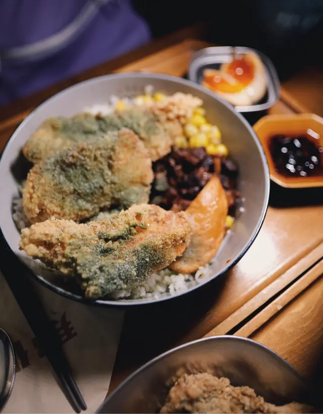❣️玫香啤酒豬軟骨飯豬軟骨控因為呢個豬軟骨飯吸引過黎!肥瘦適中,肉質鬆軟,再用埋啤酒醃製,令味道更加香甜🤤鍾意食豬軟骨既朋友可以試試❣️那個滷排骨便當另一樣吸引既係滷排骨便當有成個飯碗咁大!排骨揼到好薄,薄薄上左炸粉去炸小,炸完再浸滷汁。排骨肉質雖然有少少鞋,但係豬肉味幾重,而且炸皮薄得黎浸左滷汁都幾脆,索左滷汁味道鹹鹹甜甜,撈飯一流。便當關仲有五種配菜,餐廳會不定期更新,每次都有配搭有新鮮感🤤🤤🤤❣️前排新推出蛋餅同出面食開既蛋餅唔同,係脆皮又有肉鬆🤤🤤❣️炸雞Ho juicy 🤩🤩查看更多