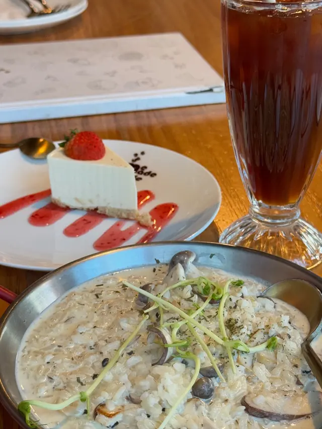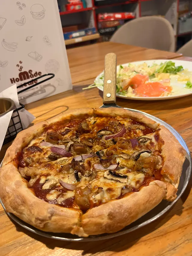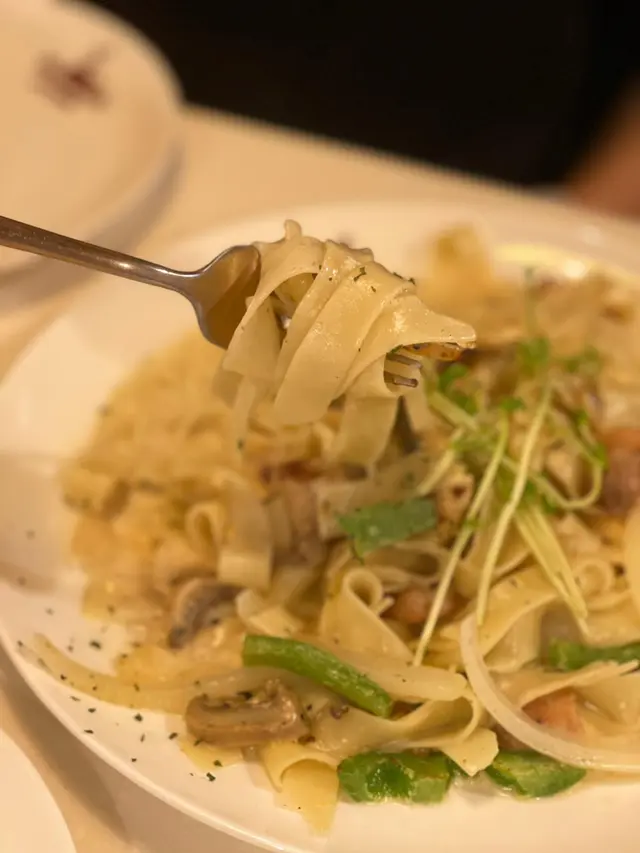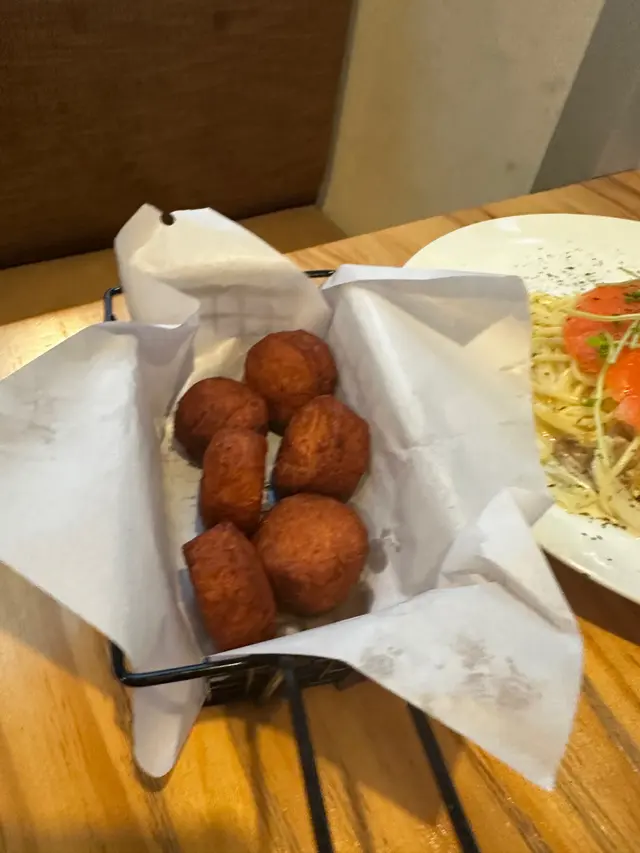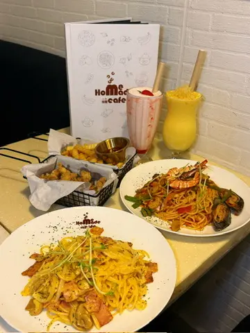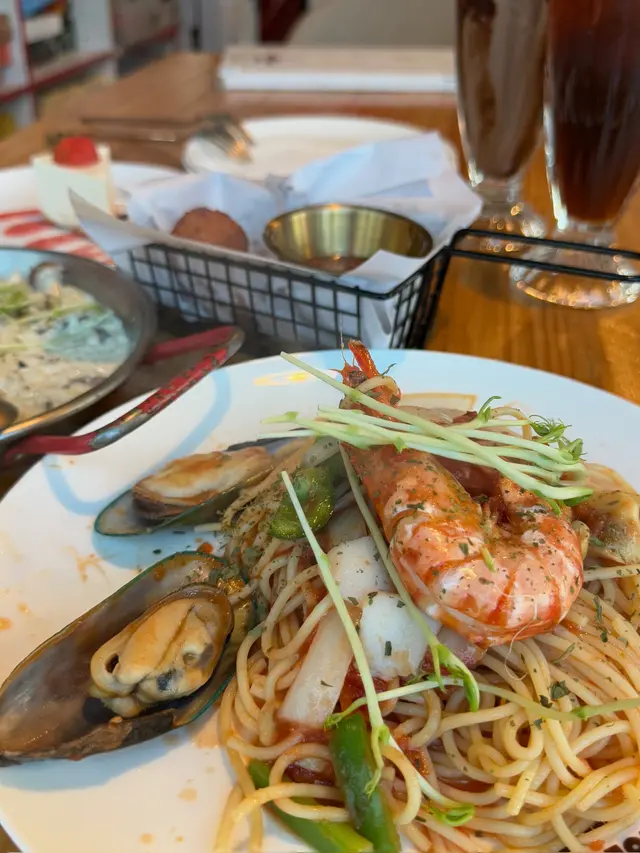 今日friend約咗我傾佢嘅人生大事😆地點就係家樂坊對面 都幾就腳唔講都唔知原來家樂坊對面嘅登打士廣場上面有間自成一角嘅Cafe店員安排咗唔係鋪面嘅 另外一間房都幾有私人空間 入邊都有啲生日party嘅裝飾,啱晒啲朋友約開生日party烤雞蘑菇闊條麵份量都幾足夠,烤雞唔會太鹹忌廉都唔會太膩,整體嚟講幾平均,唔錯香辣虎蝦海鮮意粉小辣得來唔過分,蕃茄味亦都夠酸,小刺激得來幾開胃,配料有虎蝦,青口同埋魷魚,整體來講配合得幾好芝士西蘭花西蘭花好大隻,配埋完全溶化嘅芝士拉絲,平時唔係好食蔬菜嘅朋友都忍唔到口全部清晒蜜糖雞翼焗得啱啱好金黃色,脆口得來配返少少蜜糖,鹹鹹甜甜,好味朱古力香蕉多士伴雪糕本身食完晒啲嘢已經好飽,仲驚緊食唔落呢個多士,點知完全冇問題,因為真係幾好食!朱古力醬配多士本身已經好易入口,再加埋邪惡嘅凍冰冰朱古力雪糕,兩個人一路話夠啦夠啦,但係轉個頭就成個食晒🤣整體嚟講坐得都幾舒服,嘢食質素唔錯,下次如果同多幾個朋友想搵間Cafe坐下應該都會再嚟…查看更多