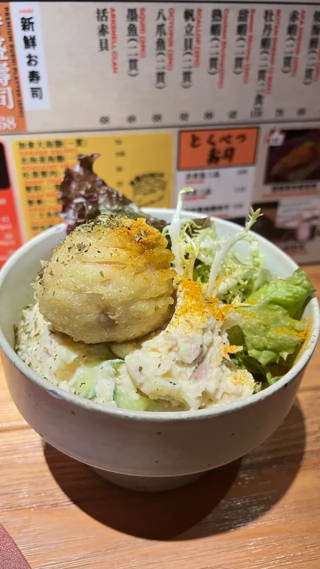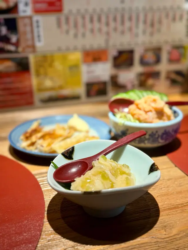 今晚走進天后清風街這間居酒屋食晚餐,這家以木系傢俬配上柔和燈光,中間有個大型投影屏幕播放着MV,感覺很像日本街頭居酒屋風格。適逢是星期二仲有live band show,high爆🎸🎶看着吧台後方,廚師凝神切魚生的身影,正是新鮮的最佳保證。我們點了個每日都唔一樣嘅[神秘炒飯],連職員都唔知道內容係乜,每晚由第一位顧客揭盅先知,夠晒神秘‼️由於我哋係第一個顧客所以有幸由我們揭盅,今日神秘炒飯係🌟鰻魚炒飯🎉超美味😋🌟炸蛋白松露油薯仔沙律帶顆粒咁嘅吞拿魚薯蓉,加上糖心炸雞蛋同白松露油十分惹味。🌟吉列蠔隻隻蠔都好大隻,師傅炸到外面酥脆之餘入面仍然保持軟嫩,蠔味鮮甜。🌟忌廉芝士鰻魚卷鰻魚芝士卷經常食,但係這家有驚喜,卷物上面加咗柚子皮同柚子醬,多咗一種清新嘅感覺,一食落口好驚艷。🌟海老天婦羅香脆超薄麵衣,包着大大隻爽脆甜美大虎蝦。🌟鐵板海鮮大阪燒外皮酥脆,內餡柔軟,味道豐富。🌟燒菠蘿店員推薦必食,真係冇介紹錯,好清甜。串燒點選了🌟雞胸三角軟骨和雞腳筋,兩款都很脆口,好味道。這家居酒屋,絕對是追求高質日式料理和熱鬧氛圍的必選之地!下次想找個有氣氛又好食的聚腳點,記得來試試!…查看更多