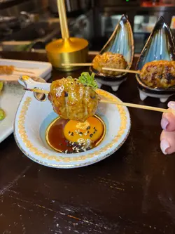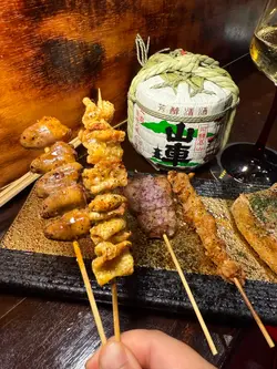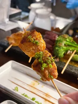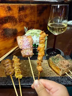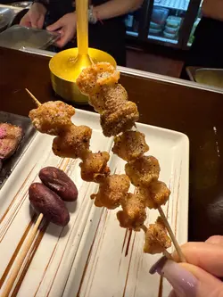 灣仔型格串燒🍺有朋友推介灣仔一間日式串燒居酒屋非常有氣氛,餐廳環境隱蔽,位於後巷街燈位轉入去,主要吃串燒、炸物和飲酒,非常熱鬧。食物即叫即做熱騰騰,手機自助下單,圖文並茂,另收加一服務費小店座位不多,環境細小,建議提早預約,星期六晚上七點有live Band演唱,可以點歌和唱歌,剛好今天唱到晚上12點,現場非常有氣氛免治雞肉棒(自家製) $48配合雞軟骨增加口感層次雞中翼 $38肉質嫩滑雞皮 $42脆卜卜的夠邪惡厚燒牛舌心 $58 爽口彈牙,推介蘆筍豬肉卷 $42蘆筍多汁雞蠔肉 $42脆皮多汁的雞髀肉墨汁墨魚腸仔 $38甜甜的有彈牙墨魚,不錯汁燒雞髀菇牛肉卷 $48 媲美金菇肥牛卷,不會有難咬的問題韭菜花豚肉卷 $48翠玉瓜 $28香香的燒烤味秘醬燒豆腐 $32炸豆腐明太子蛋白玉子 $58明太子醬鮮味十足,配上嫩滑的蛋白,有驚喜燒蓮藕天婦羅 $58椒鹽炸蓮藕,非常惹味,適合配酒Sapporo 生啤330ml $48青檸梳打 $18服務質素:7/10環境舒適度:6.5/10ᶘ ᵒᴥᵒᶅ個人口味評分:7.5/10…查看更多