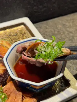 一入到去見到有勁多鬼太郎裝飾,好明顯老闆係鬼太郎fans😝好鍾意佢哋嘅豉油碟,都係鬼太郎嘅超可愛!推介吧枱位置,可以睇到師傅整嘢食嘅過程,感覺更加有氣氛!鵝肝多士表面煎得香脆,內層柔軟且非常厚身😀切開就有啲油流出嚟😜好肥美日本和牛鵝肝卷大大塊靚和牛包住厚切鵝肝😌然係卷在飯卷入面,和牛鮮嫩,鵝肝有獨特蛋白質香氣。香牛嘅油脂同鵝肝嘅蛋白質混合,勁香口。免治雞肉棒(自家製)月見汁係免治雞肉棒嘅精髓,醬汁甜甜地,生雞蛋混合之後,雞肉變得更滑。由於係免治雞肉,所以咬落去質感鬆軟容易咬。安格斯牛肉薄燒超高性價比!!!份量十足,每一片安格斯牛包裹最大量香蔥、蒜,牛肉香氣同香蔥味道混合,食到停唔到口。炒雜菜食到咁上下,食返少少菜,平衡一下,雜菜熟度剛剛好,上面加上炸蒜片,令雜菜味道提升!黑松露蟹肉冷蕎麥麺一上枱面已經見到大量蟹肉、三文魚子同黑松露,感覺好奢華。蕎麥拉麵配上秘製醋汁,有助提鮮。鯛魚燒伴雪糕熱辣辣鯛魚燒配上冰凍雪糕,紅豆鯛魚燒輕輕蘸上雲呢拿雪糕🍦好好味呀,鯛魚燒有香濃蛋香yummy…查看更多