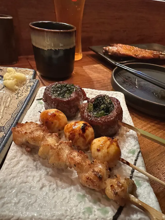 好朋友生日,揀左呢間串燒店,入到去已經好有日本feel, 感覺好正 😍😍地方唔算大,不過都坐得好舒服,只係爭左小小冷氣,但係佢地都另外加左風扇,所以都ok嘅,好明白炭爐燒,的確係有啲熱嘅,辛苦員工們燒啲咁好食嘅串燒俾我地😁😁食物方面非常新鮮好味, 燒豆腐,雞腎,雞頸肉,豚肉包生菜,呢幾樣都極力推介👍🏽👍🏽😋真心好味道😋😋雞腎大大粒,好有口感😍豚肉包生菜上面仲有啲牛油果醬😍我地仲開左3支sake 最後不得不讚,每個服務員嘅態度都超好,又玩得,又好笑,重點係呢間餐廳冇限時,而家想搵間餐廳無限時,真係有啲難度,下次一定會再幫襯👍🏽👍🏽👍🏽今晚真係玩得好開心😁😁…查看更多