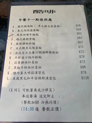 千祈唔好幫襯!未入去嗰陣話自己啲絲襪奶茶好好味,又叫人唔好食海鮮。我今次就真係...,入去之前又無講無餐叫,話除咗下午茶樣樣都有。到攞到個 QR Code 就話而家開始係晚餐時間,18:00 都未夠,你氹我入嚟嗰陣又唔見你咁講?唯有叫個黯然銷魂飯,見佢餐牌括住話秘製醬汁叉燒,同埋佢話絲襪奶茶掂就叫奶茶。奶茶嚟到即刻飲啖,有幾好飲呀?可能我唔識嘢啦,我覺得薄過我平時飲嗰啲普通茶餐廳囉。到碟飯嚟咗,吓?!飯🍚,普通白飯,叉燒,唔好同敏華黯然銷魂比,但都唔好咁普通吖!說好的秘製醬汁呢?普通豉油咋喎,加隻太陽蛋就叫黯然銷魂?咩料呀?我兩人入座,佢催我話二廚就收工,叫我快啲落第二個餐,見到個飯同杯奶茶,已經唔想嗌。問仲有無全日餐,佢話有,點知一樣唔包飲品,咁咩叫餐呀?算,就叫咗個沙嗲牛肉米+火腿太陽蛋,最好食嘅原來係個太陽蛋,我未試過茶餐廳沙嗲牛肉都係唔掂,得黑椒味,辣嘅,唔係沙嗲味,米粉個湯水哼哼,無味!真係懶打字嘅我都忍唔住要出手寫食評。都未講個價錢,由於唔係我埋單,食到一肚氣我問頭先幾多錢,我老公話 $160。$160?我食咗啲咩呀?我老公話佢有加一,激死 x 3!仲諗起個職員喺臨走仲同我哋講,得閒再嚟食過,我哋初一到初四都唔休息㗎。多謝晒啦!請都唔再嚟!…查看更多