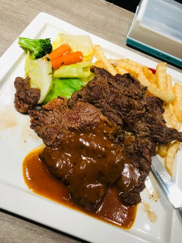 一直以為D2 Place入面嘅西餐都係貴,但有日無意中搵到呢間餐廳🔍主要係食西餐同泰國菜,都係普通餐廳會見到嘅菜式lunch一百蚊都唔使就食到西餐😆仲要係黃店💛好可惜食第二次時先知佢地9月結業,希望佢哋有機會再開翻平日1點幾去到已經見到餐廳full左,出面仲有唔少人排緊隊最後等左十幾分鐘先有位。但第二次1點前去到就唔使等😗除左出餐,其他都係以自助形式運作,包括付款同拎水~~~🍟珍寶炸魚薯條($88)🪄7.1/10本身冇諗住叫,但出面等位個陣見到炸魚好大舊,跟住同朋友不約而同地話吸引想嗌😆塊炸魚差唔多有手掌咁大,都ok抵食炸漿唔厚,食落酥脆👍🏻魚柳入味唔腥,而且冇雪味,點醬食簡直一流(⁎⁍̴̛ᴗ⁍̴̛⁎)呢個餐配嘅薯條似係自己切再炸,而唔係入貨.🍔軟殼蟹蕃茄漢堡($83)🪄6.7/10個漢堡都幾高身,所以都諗左下應該點食好😂不過對比其他兩個,呢個餐少失望🥲因為我個碟隻蟹就靚靚仔仔好完整,但同事果個係幾舊手手腳腳拼埋一齊,所以更加難夾包一齊食🤨軟殼蟹有啲油異味,都有少少膩,好彩個入面仲有大大塊番茄同生菜balance🥬.🐂紐西蘭肉眼扒配燒汁($98)🪄6.9/10味道正常發揮,雖然都算大塊,但lunch黎講少貴薄嘅部分比較好食,有少少香口,但厚肉就偏硬😬呢幾個餐都有配薯條,但食個陣已經凍左,唔多脆~~~⭐️回頭指數🌕🌕🌕🌑🌑餐廳食物質素整體黎講都ok,而且staff都好nice好可惜佢地不獲續租,又少咗一間黃店可以食啦 :(…查看更多