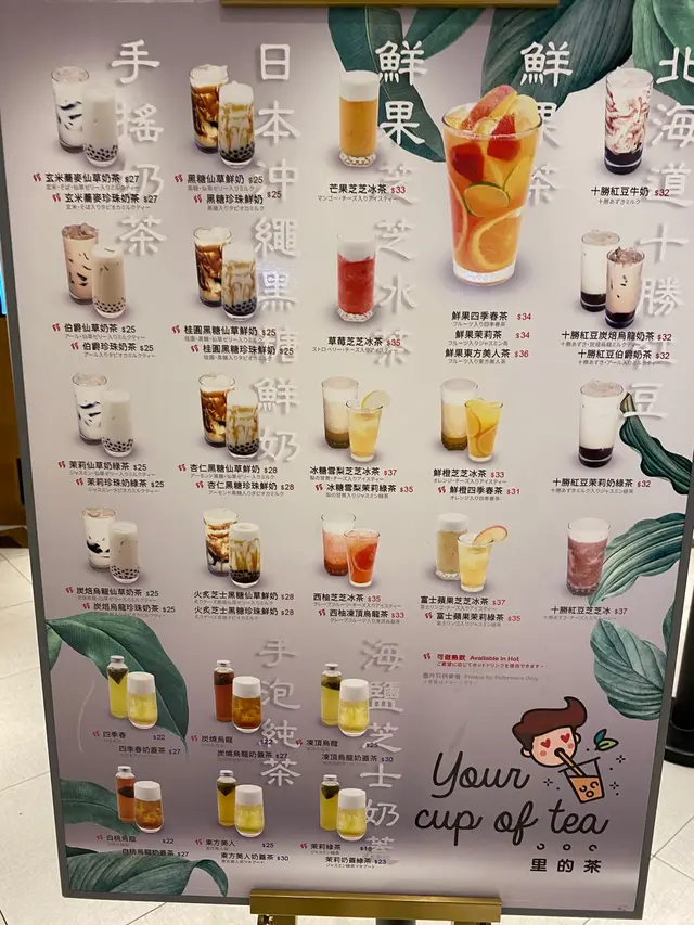 今日同男朋友經過,第一次見到里的茶,因為我地2個都未試過飲呢間,而且又見到都多人排梗隊,覺得唔會太差,所以見到都想試下。餐牌上面,飲品既選擇都好多,各種茶款,茶底都有得簡。不過甘多款入面,我同男朋友2個都係最鍾情飲奶茶。我簡左芝士黑糖珍珠鮮奶,佢地呢度d杯夠晒大杯,但平均一杯都係賣梗廿十五蚊左右,其實性價比都幾高,抵飲之選!值得提既係呢間d黑珍珠幾特別,唔係好似其他茶飲店1甘煮到軟林林,咬落去好有咬感,唔會漿住晒!落既黑糖都夠,而且又唔會太甜,岩我呢d怕甜既人士!…查看更多