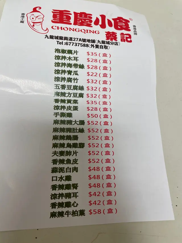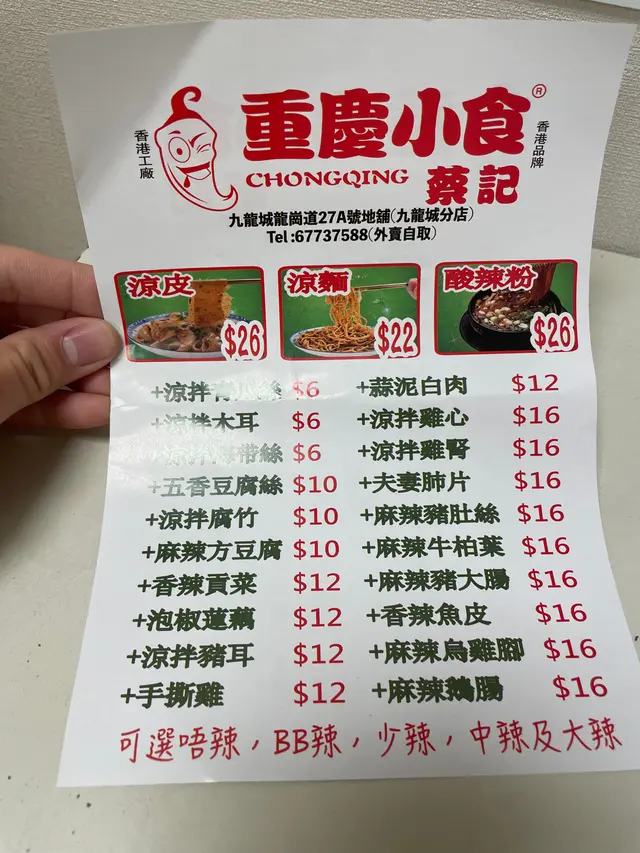 重慶小食 (九龍城) 網址: https://s.openrice.com/QrbS00VSB00 地址: 香港九龍城龍崗道27A號地舖 電話: +852 67737588
