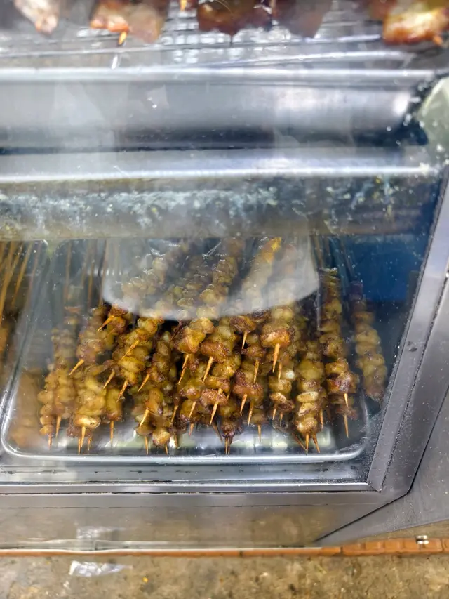 重點係13$ 有兩串。自始就嚟親都只食雞肉。佢會問你要唔要辣~我就食開辣,仲會叫佢多辣~男友就唔吃辣,但我覺得辣定唔辣都唔影響好多,都好惹味~落雨天☔️或者凍凍食個風味真係幾何級數咁上去~當然佢食材都係普通雞,但叫完幾串 企喺街邊食真係風味十足,係好難忘嘅食野體驗。相隔4年再食,個味都係冇變。