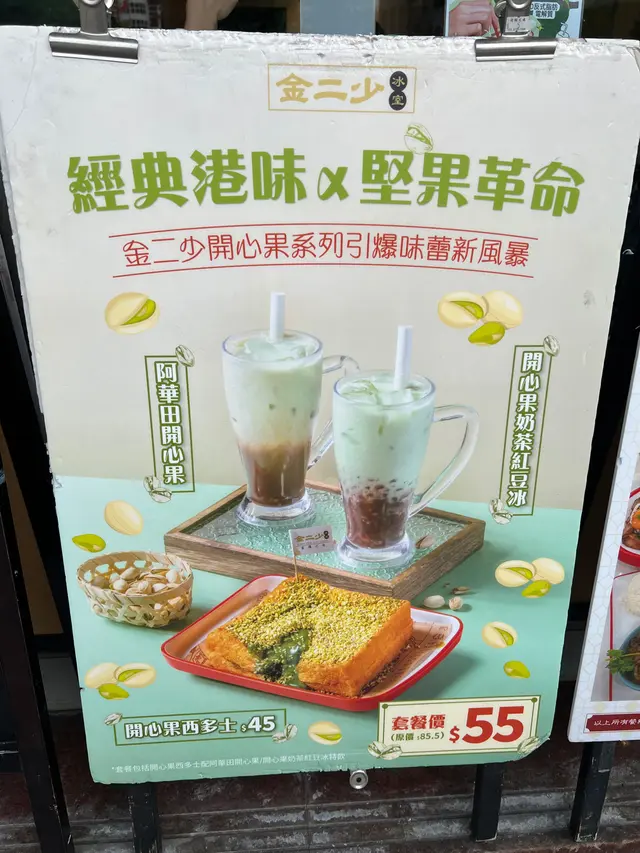 見到佢個開心果西多士,開心果控必點之選。宜家仲有菠蘿豬扒蛋包,我都好想試下。最近婆婆話好耐無飲紅豆冰,所以點了一杯開心果奶茶紅豆冰同開心果阿華田,更有不同優惠。(開心果奶茶紅豆冰同開心果阿華田)(開心果奶茶紅豆冰)奶茶味濃郁香滑、紅豆好軟腍、開心果有粒粒咬口,都幾香又唔會太甜