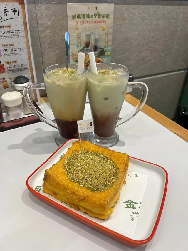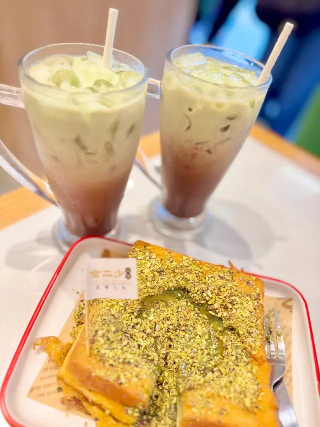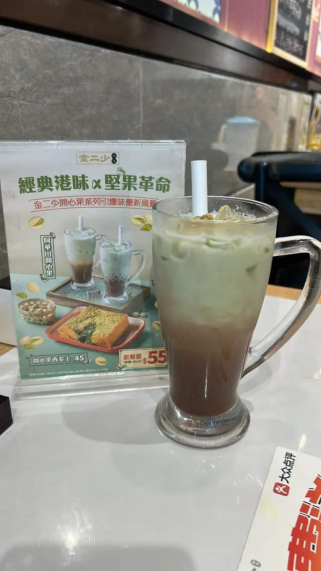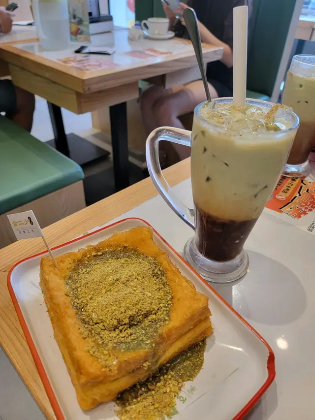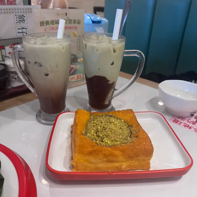 見到佢個開心果西多士,開心果控必點之選。宜家仲有菠蘿豬扒蛋包,我都好想試下。最近婆婆話好耐無飲紅豆冰,所以點了一杯開心果奶茶紅豆冰同開心果阿華田,更有不同優惠。(開心果奶茶紅豆冰同開心果阿華田)(開心果奶茶紅豆冰)奶茶味濃郁香滑、紅豆好軟腍、開心果有粒粒咬口,都幾香又唔會太甜
