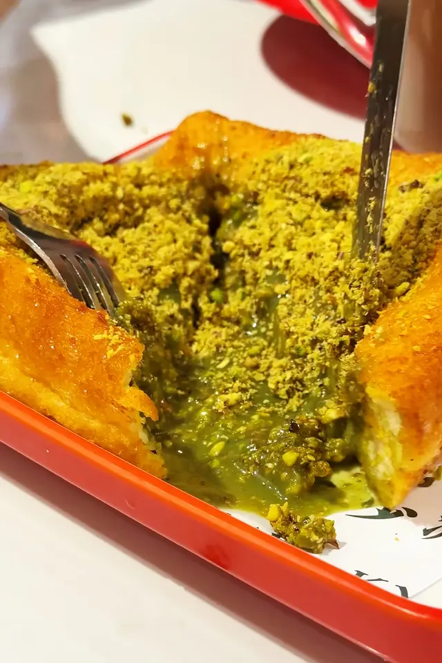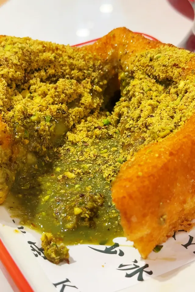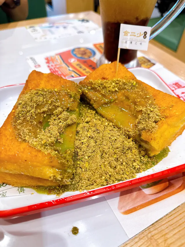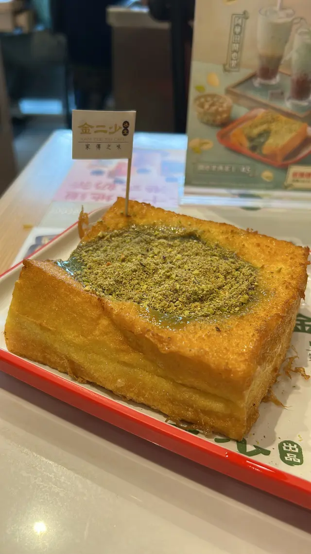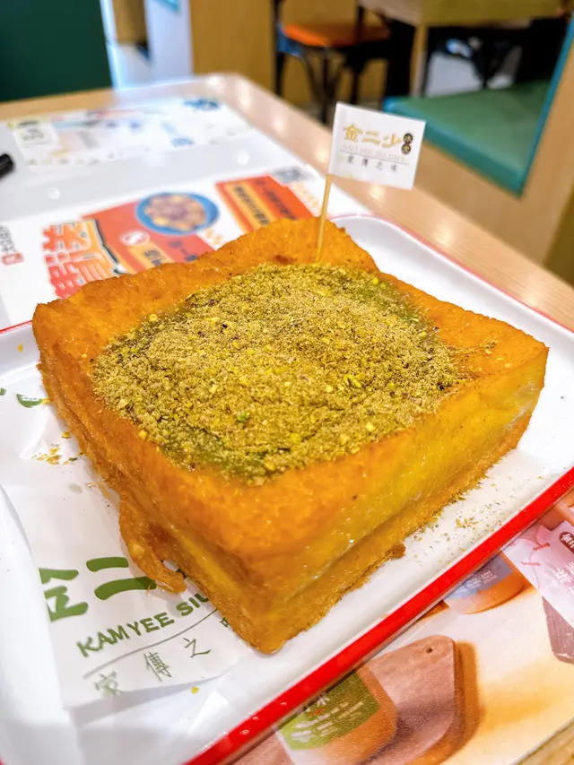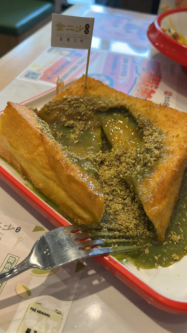 (開心果西多士)好震撼!一切就爆開心果漿,西多士好鬆脆,即點即製,內面軟軟,配上開心果漿及開心果碎,真係好爽!阿囡食得好開心